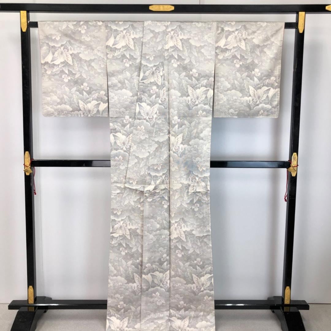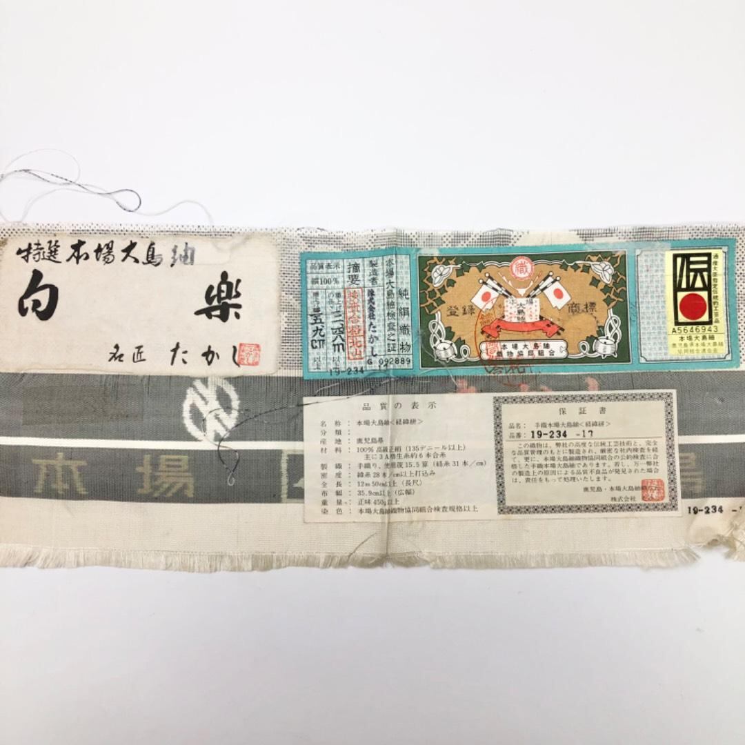 本場大島紬 白大島 名匠たかし 蝶々に花模様 証紙付 トールサイズ K-5847 着物 きもの kimono 和服 和装 中古 リサイクル着物 【送料無料】