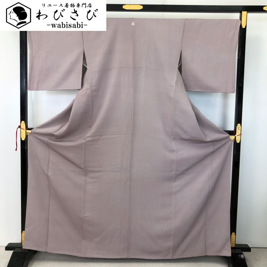 色無地 桜鼠色 近鉄お誂え 縮緬 トールサイズ K-5848 着物 きもの kimono 和服 和装 中古 リサイクル着物 【送料無料】