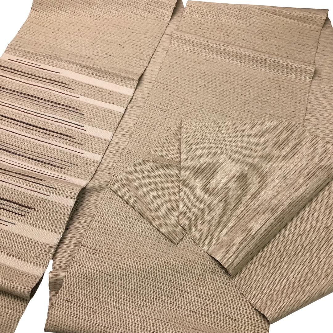白茶色ベースのお色味、節などの味わいのある自然な風合いの横段織模様がデザインされた素敵なお品でございます。