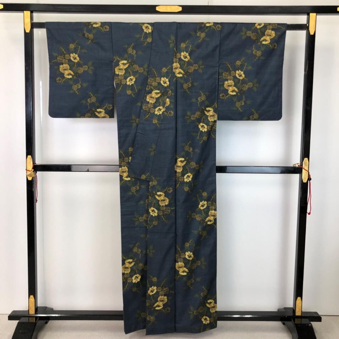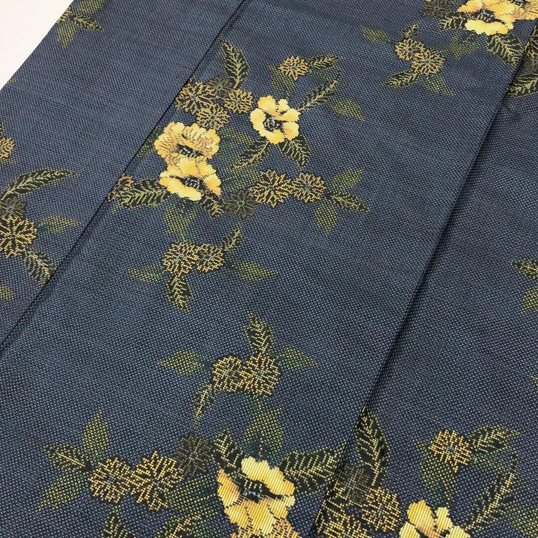 本場大島紬 藤絹織物 一元7マルキ 証紙付 花模様 紺鉄色 K-5849 着物 きもの kimono 和服 和装 中古 リサイクル着物 【送料無料】
