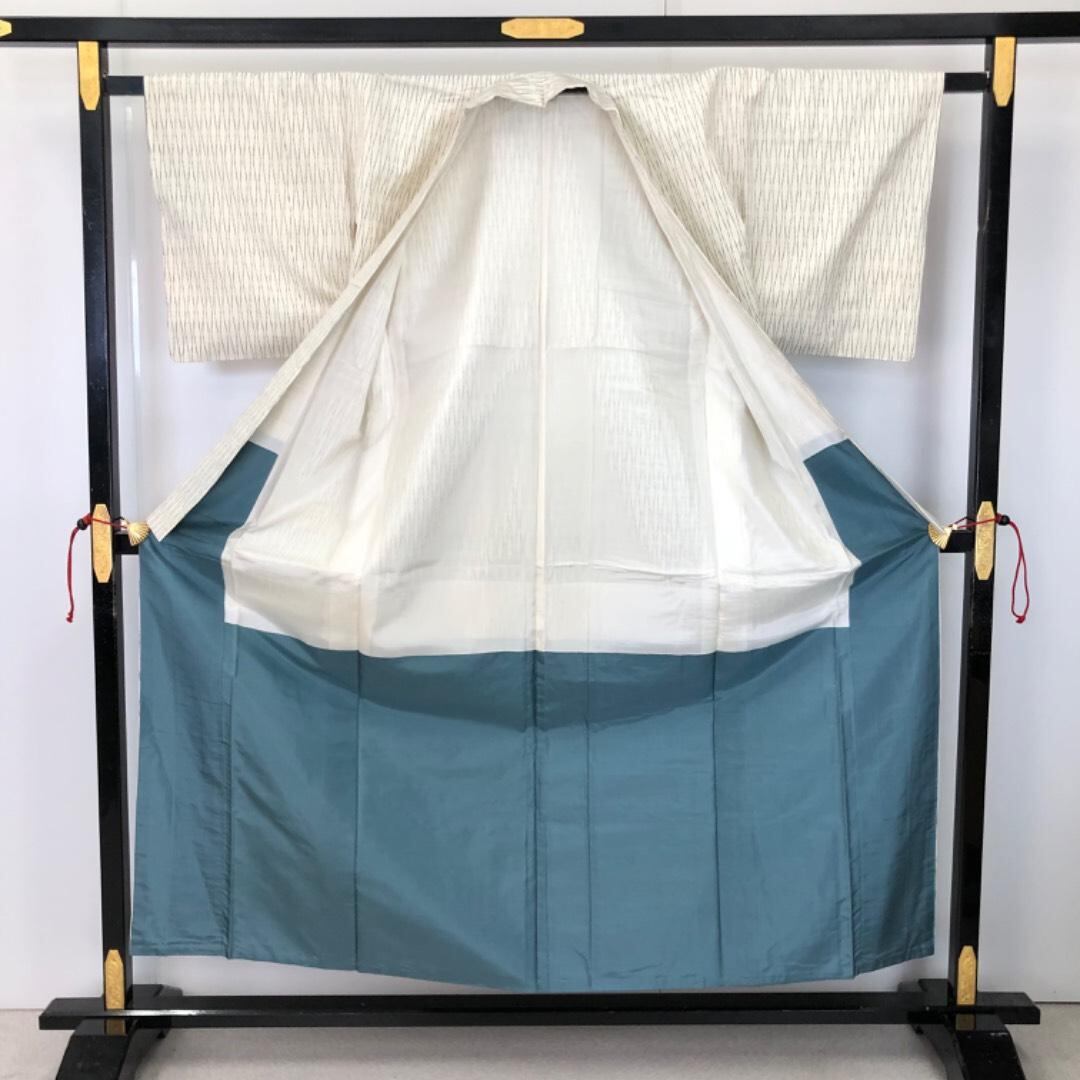 乳白色の上品なお色味に雰囲気の良い立涌の柄裄がデザインされた素敵なお品でございます。