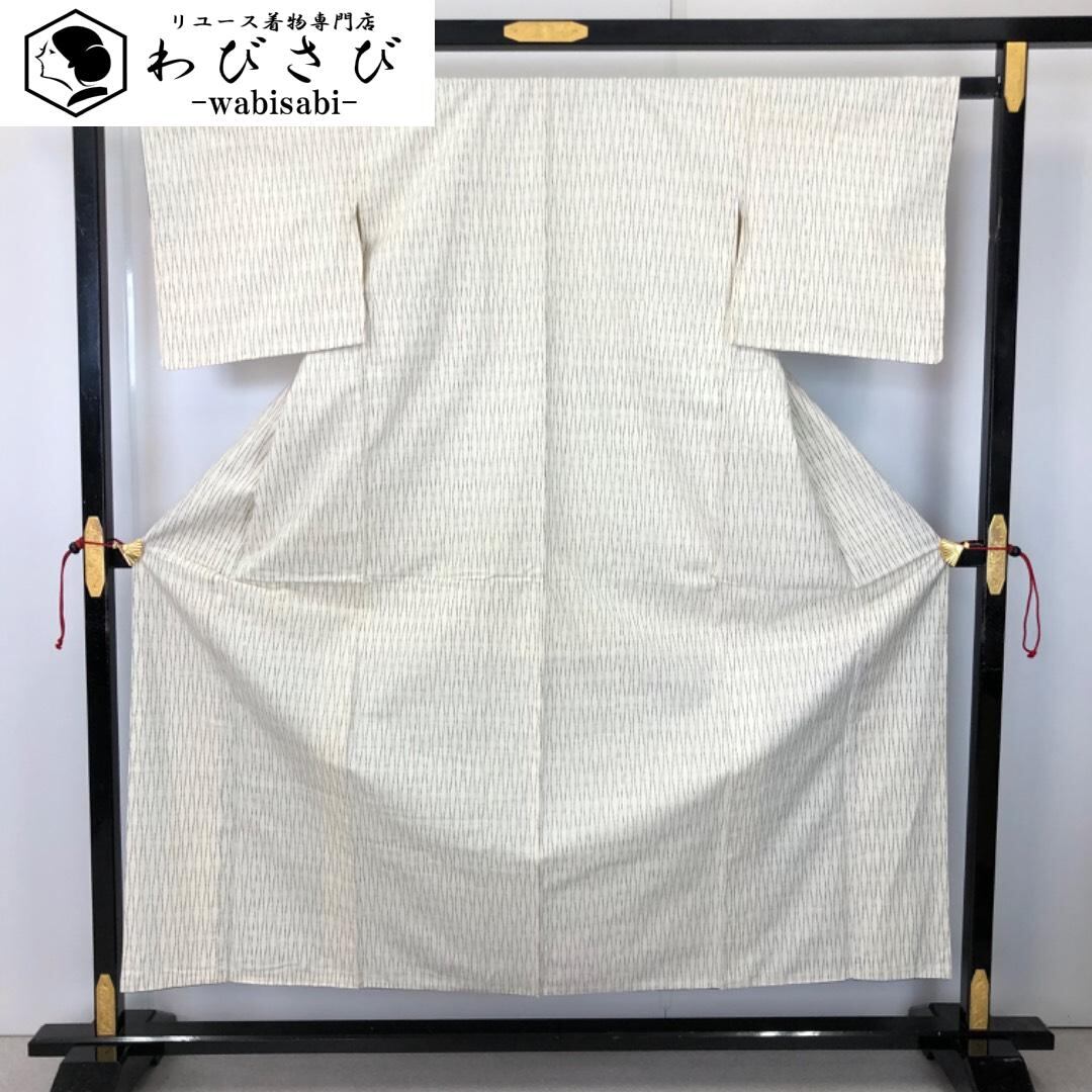 紬着物 立涌 乳白色 しつけ糸 K-5851 着物 きもの kimono 和服 和装 中古 リサイクル着物 【送料無料】