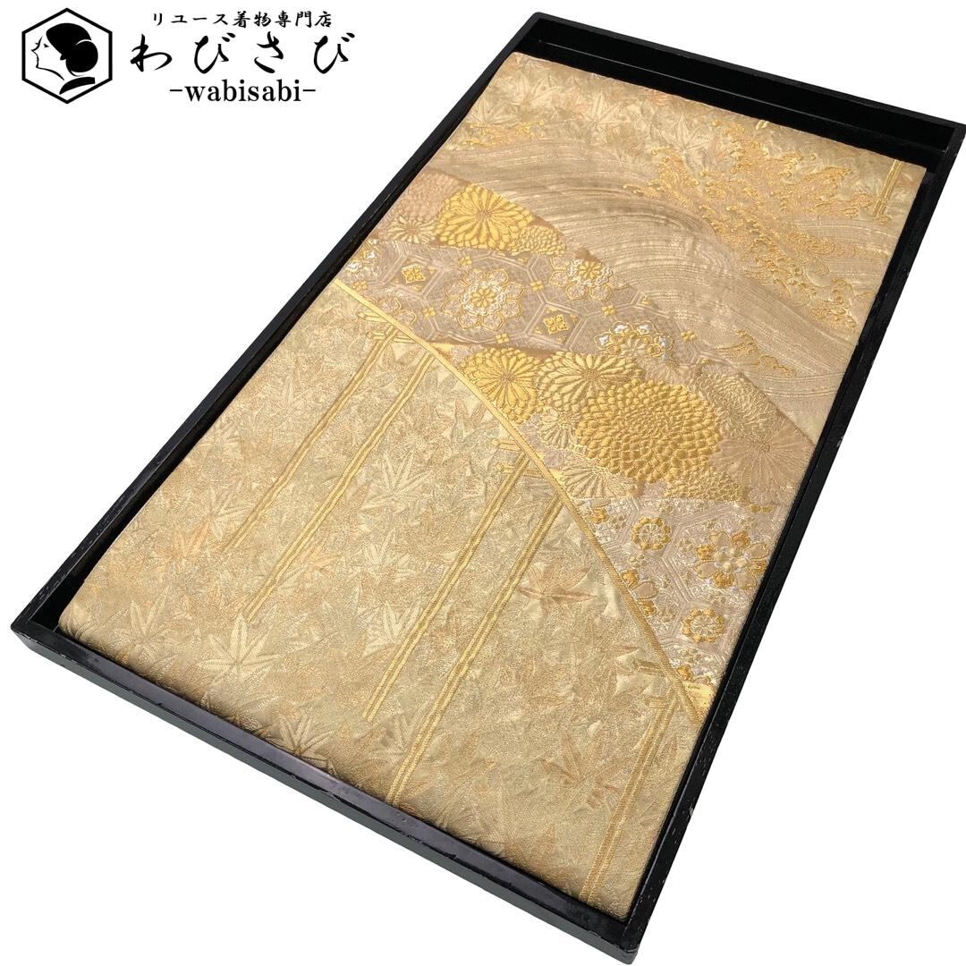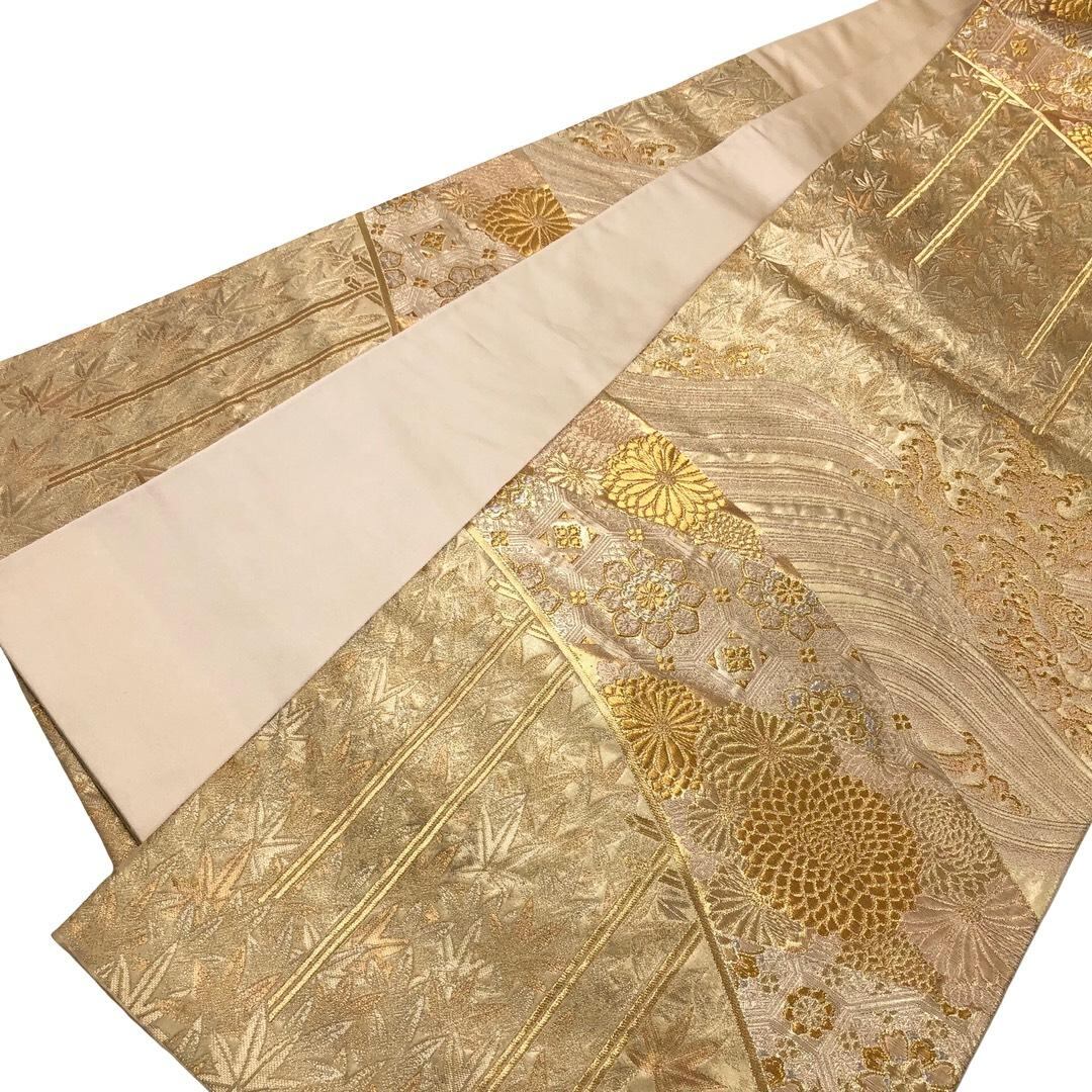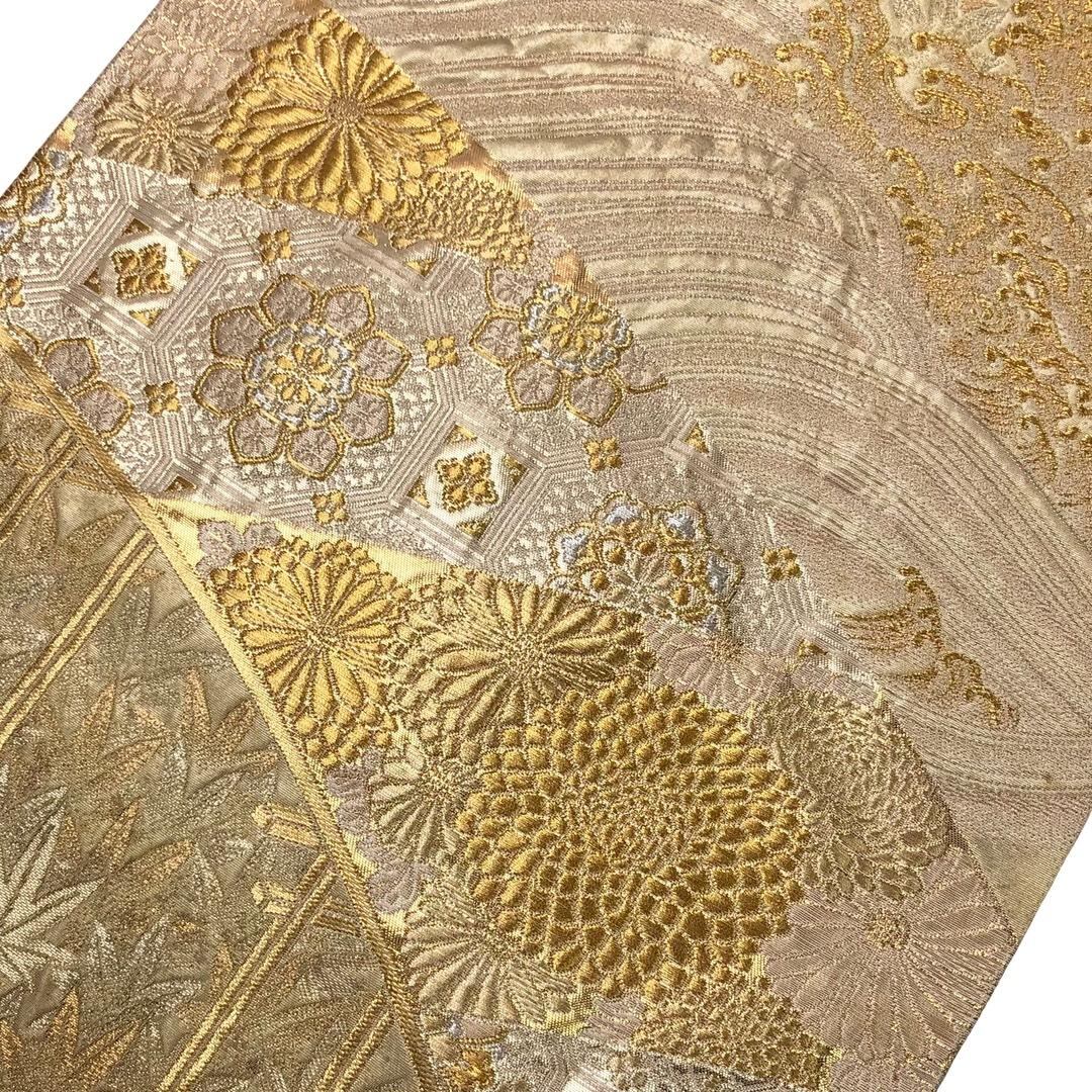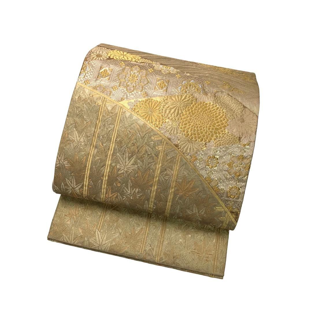 袋帯 西陣 聚楽 蜀江文様に花模様 菊 紅葉 金糸 金色 O-6102 着物 きもの kimono 和服 和装 中古 リサイクル着物 【送料無料】
