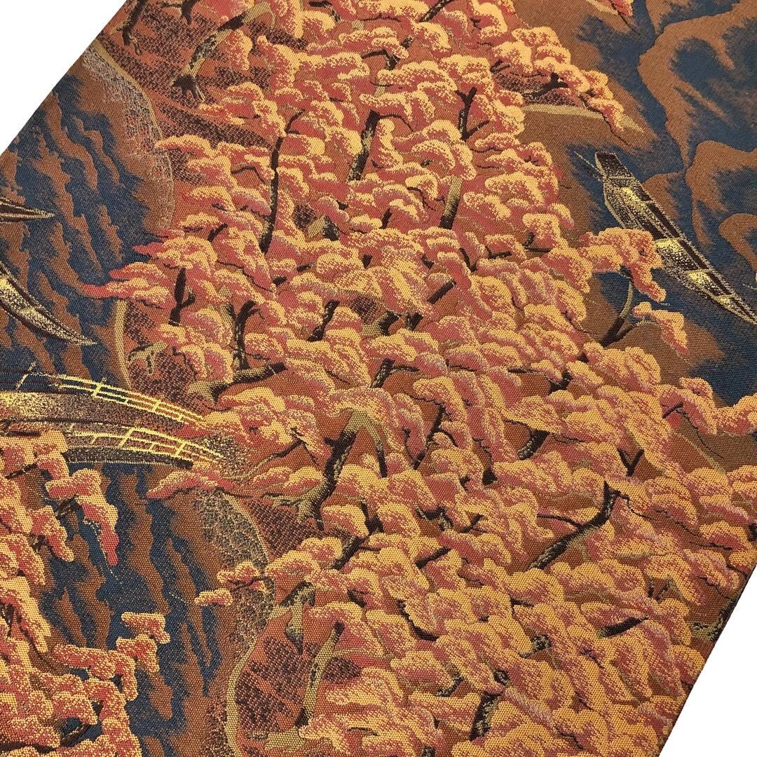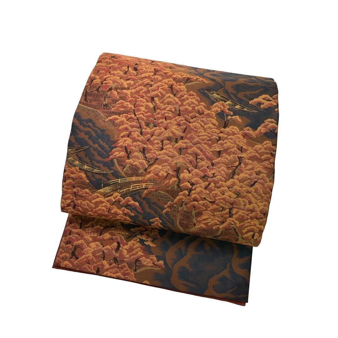 袋帯 天乃橋立 風景 松に舟 錫紵色 O-6103 着物 きもの kimono 和服 和装 中古 リサイクル着物 【送料無料】
