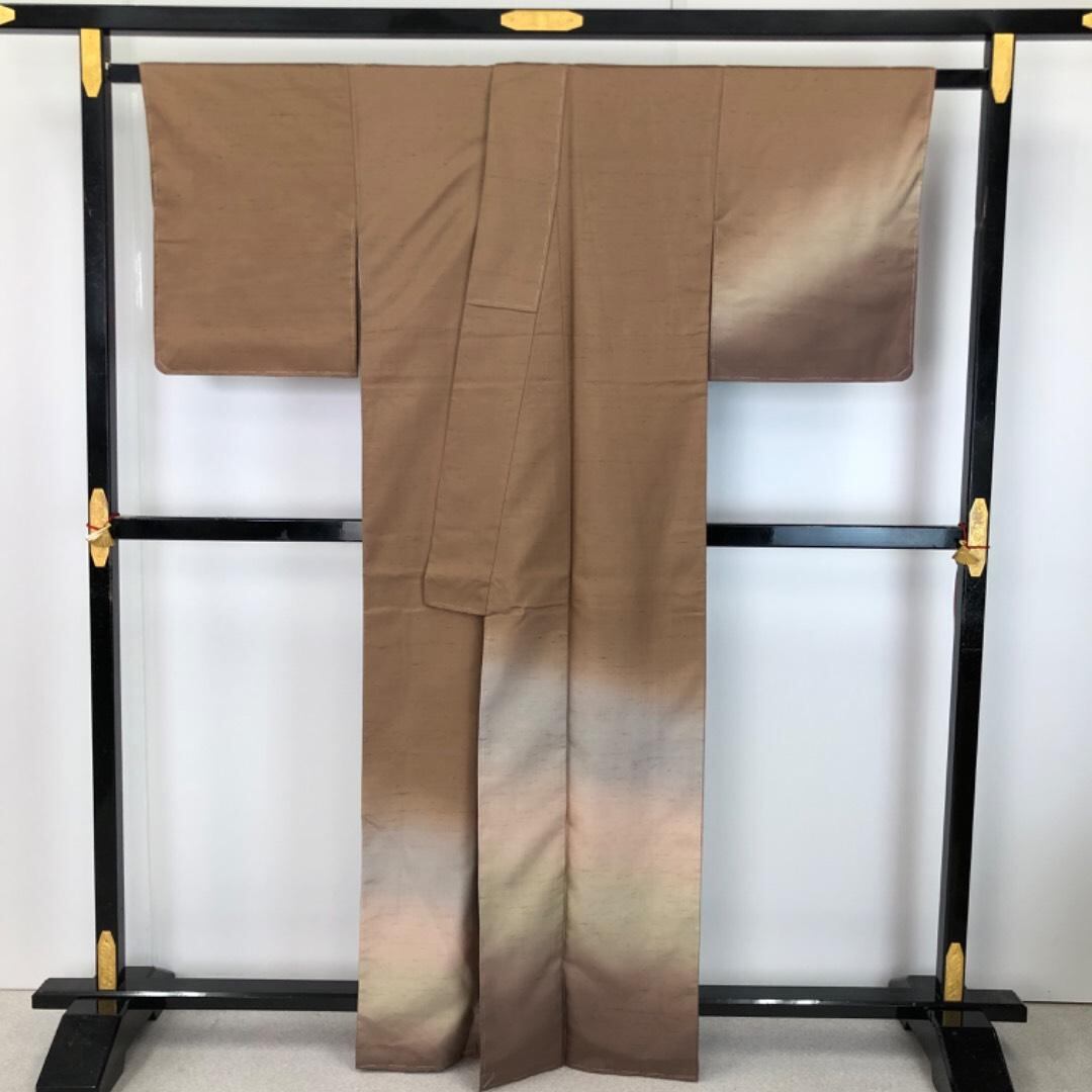 牛首紬 付下げ 暈し模様 猟虎色 しつけ糸 ガード加工 K-5816 着物 きもの kimono 和服 和装 中古 リサイクル着物 【送料無料】