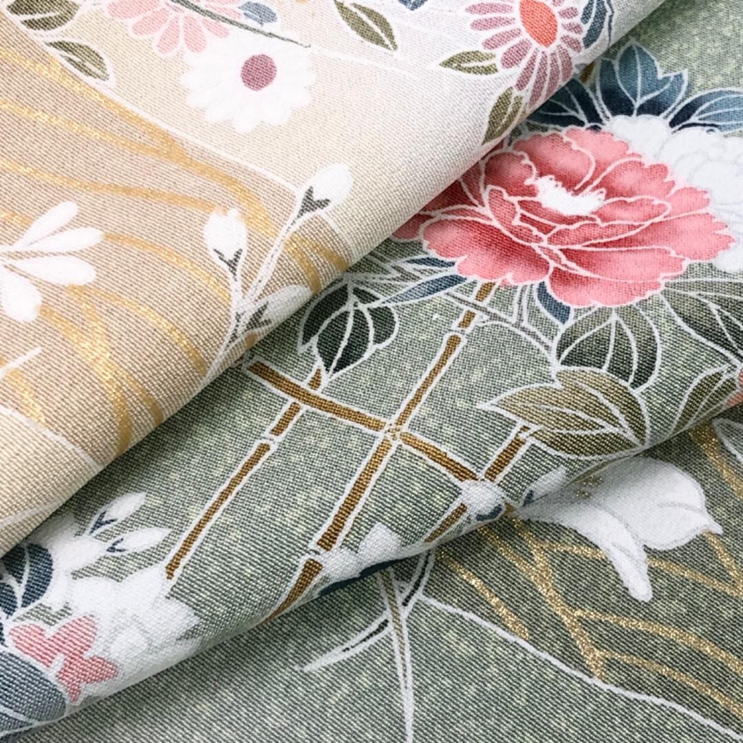 青磁色の品のあるお色味に叩き染、飛翔鶴に美しい花模様がデザインされた華やかな雰囲気の素敵なお品でございます。