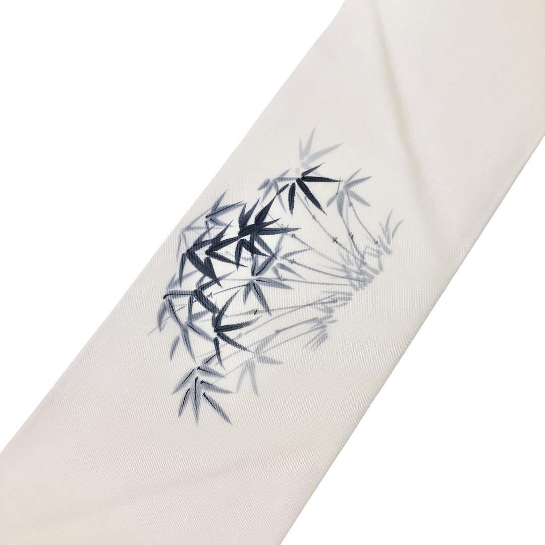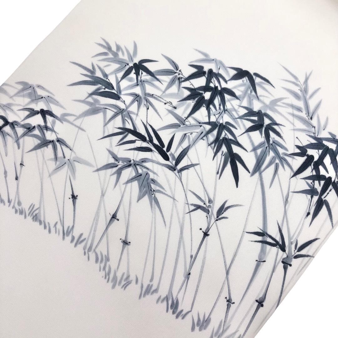 乳白色の上品なお色味に手描きの笹模様の柄行がデザインされた素敵なお品でございます。