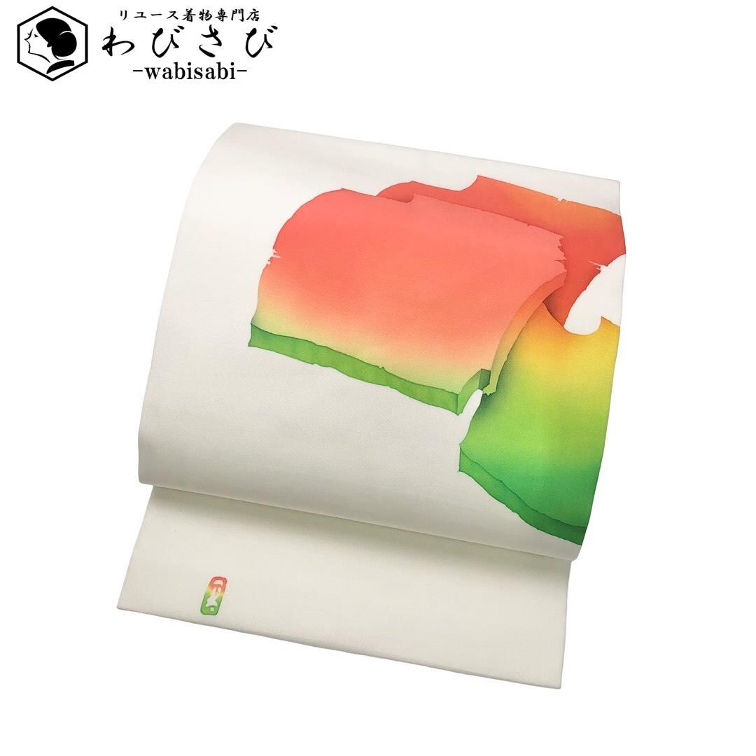 名古屋帯 作家物 塩瀬 抽象模様 乳白色 O-6166 着物 きもの kimono 和服 和装 中古 リサイクル着物 【送料無料】