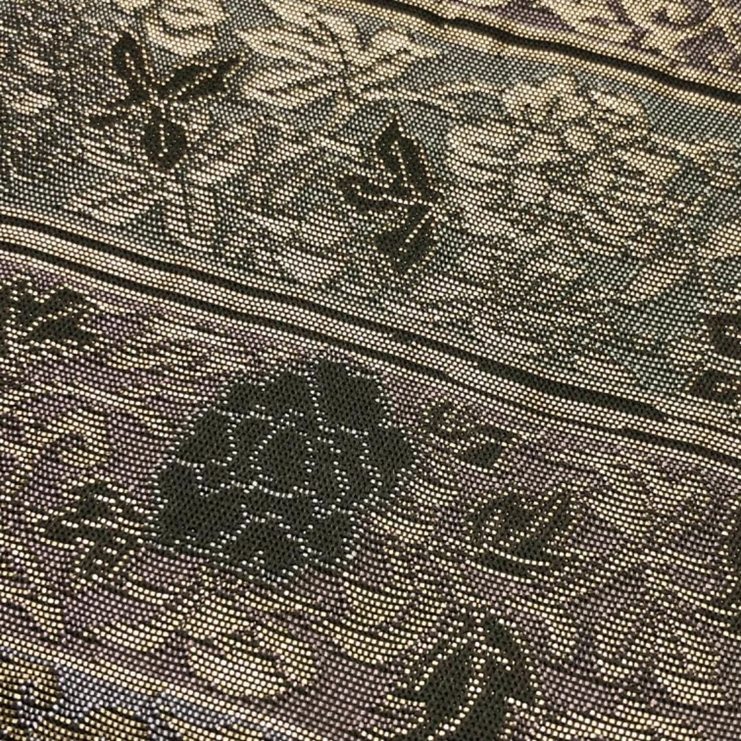黒橡色ベースのお色味に横柄の花唐草模様の雰囲気の良い柄行がデザインされた素敵なお品でございます。