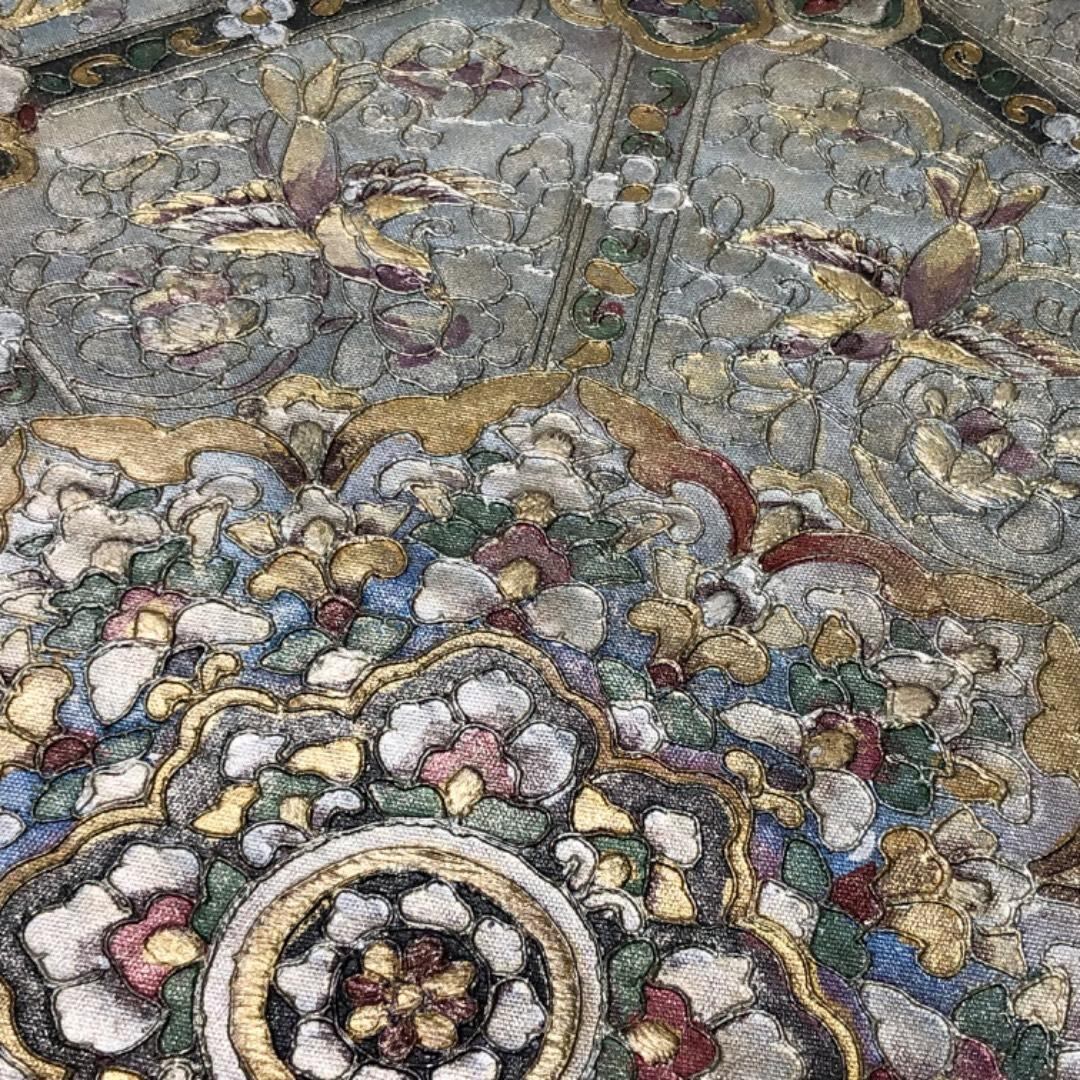 金銀彩の煌びやかな鳥に華柄模様の柄行がデザインされた素敵なお品でございます。