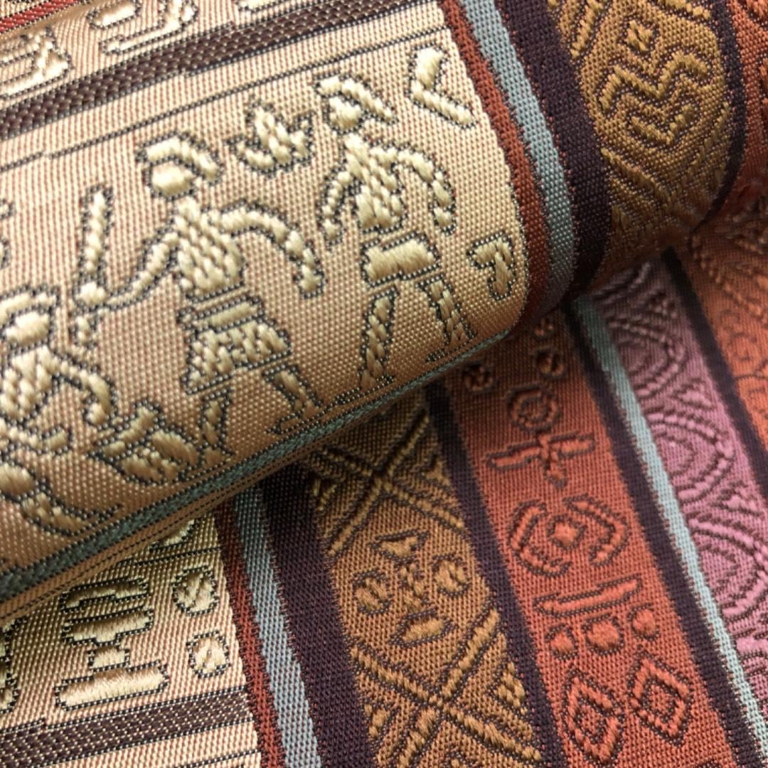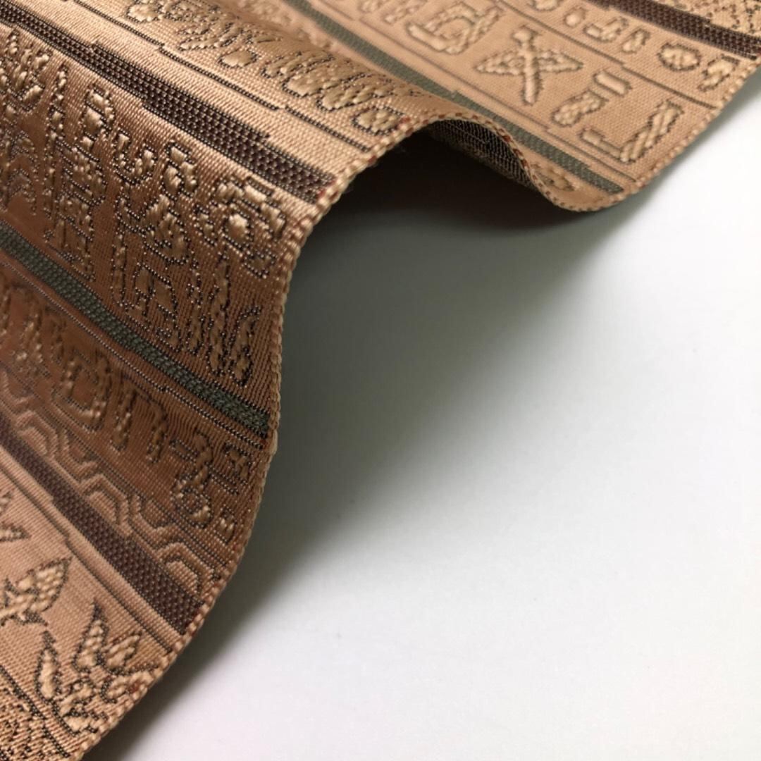名古屋帯 壁画模様 縦横縞模様 薄香色 O-6117 着物 きもの kimono 和服 和装 中古 リサイクル着物 【送料無料】