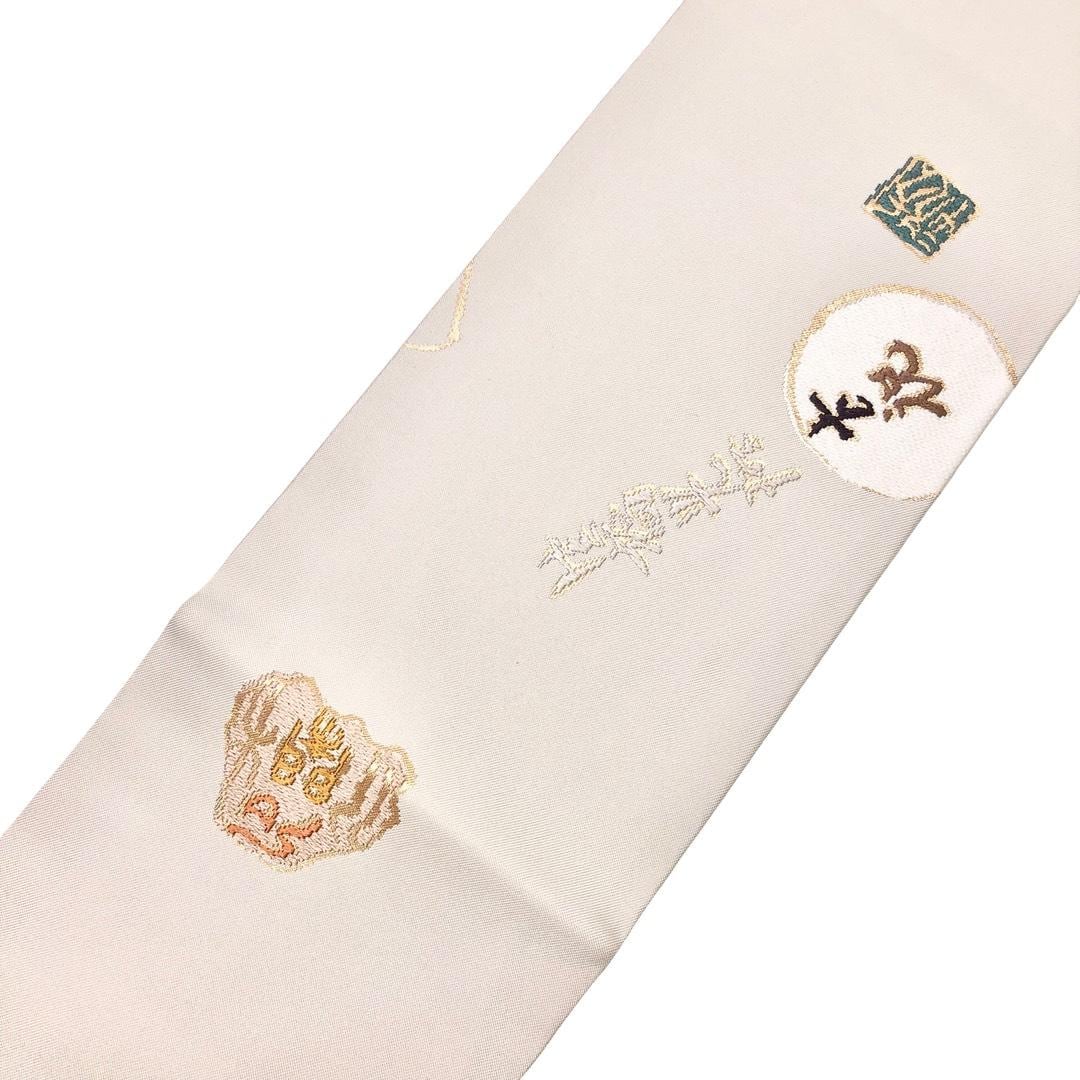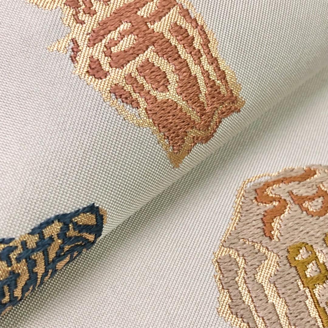 尾花色の上品なお色味に多様な漢字柄がデザインされた素敵なお品でございます。
