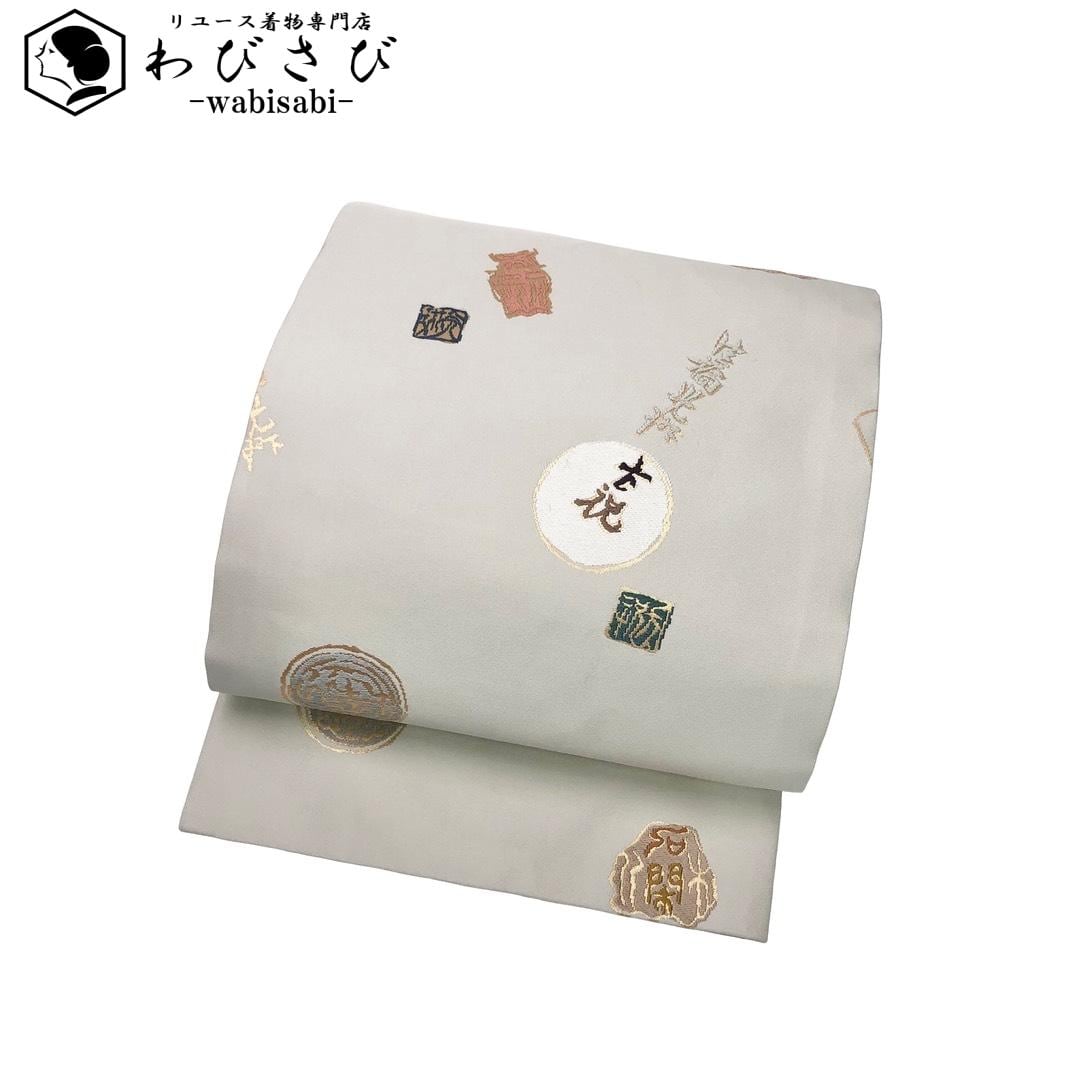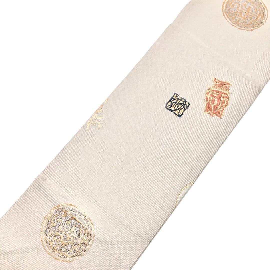 名古屋帯 漢字 尾花色 金糸 O-6137 着物 きもの kimono 和服 和装 中古 リサイクル着物 【送料無料】