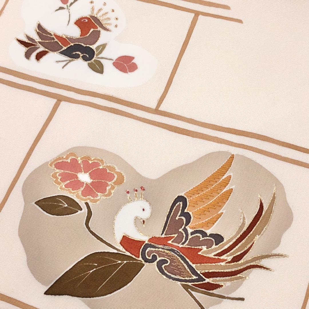 乳白色の上品なお色味、鳥に花模様がデザインされた雰囲気の良い素敵なお品でございます。