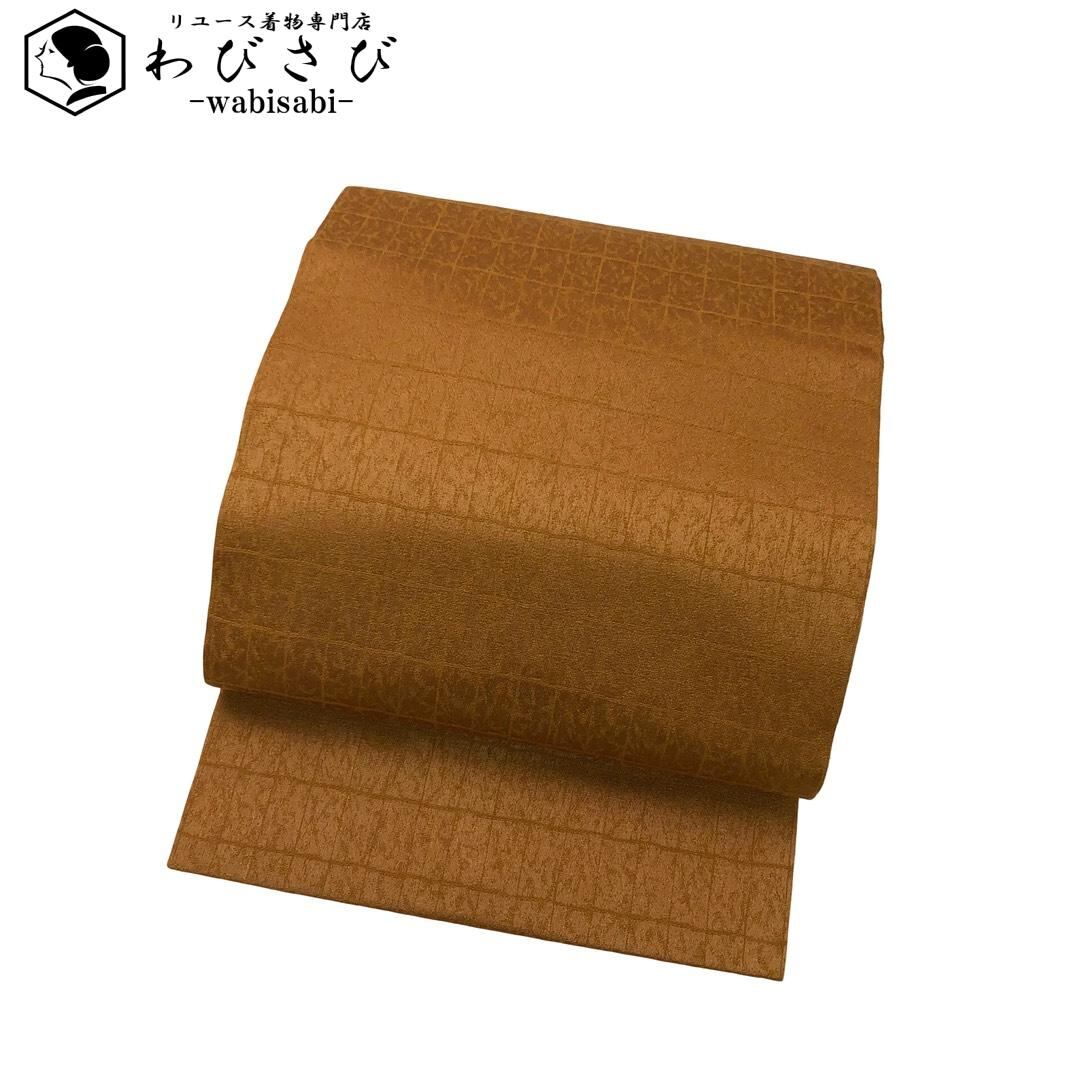 名古屋帯 格子柄 遠州茶色 O-6140 着物 きもの kimono 和服 和装 中古 リサイクル着物 【送料無料】