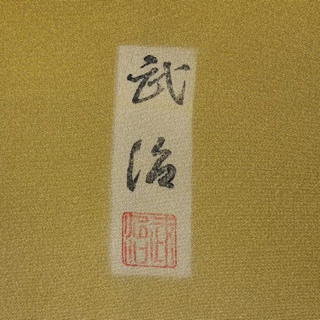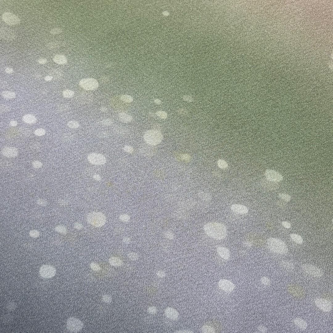 唐金色ベースのお色味に美しい染めの色彩、雰囲気の良い水玉模様がデザインされた素敵なお品でございます。