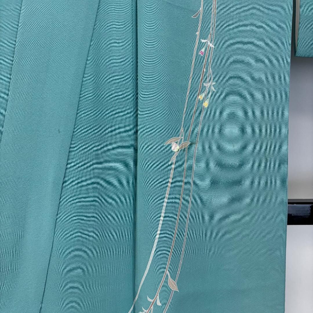 水浅葱色の品のあるお色味に美しい花模様がデザインされた素敵なお品でございます。