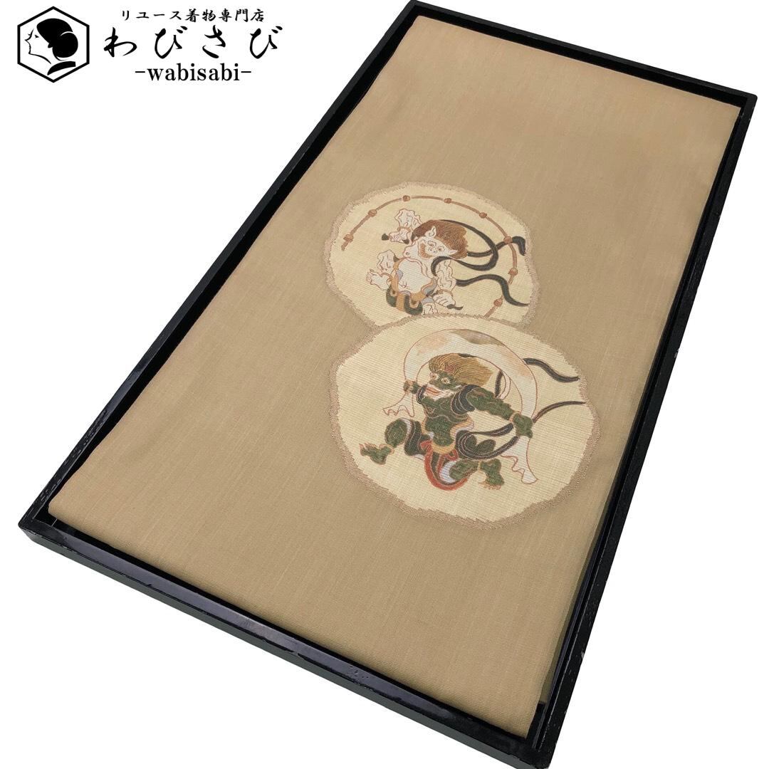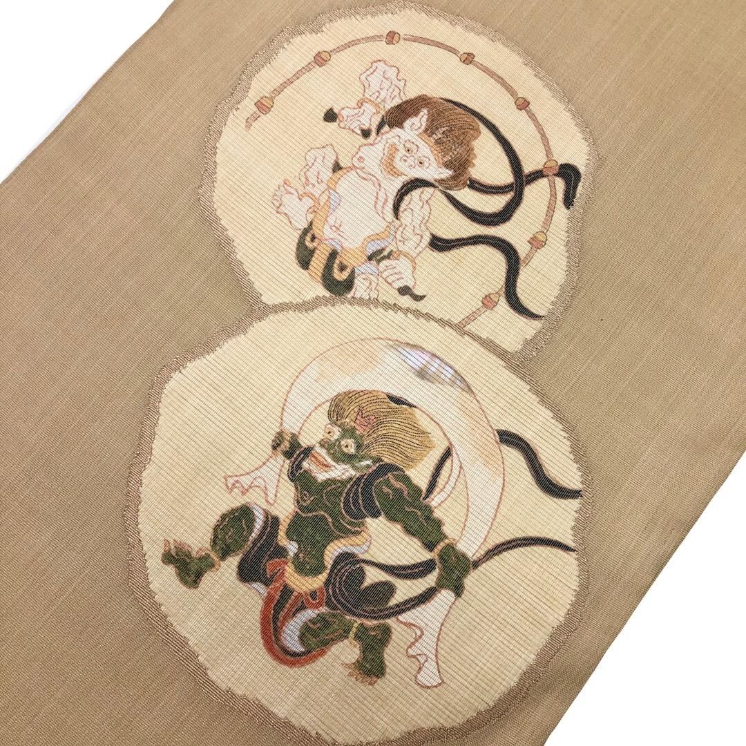 袋帯 伝統工芸士 寺島匠保製織 風神雷神 螺鈿 胡桃色 O-6153 着物 きもの kimono 和服 和装 中古 リサイクル着物 【送料無料】