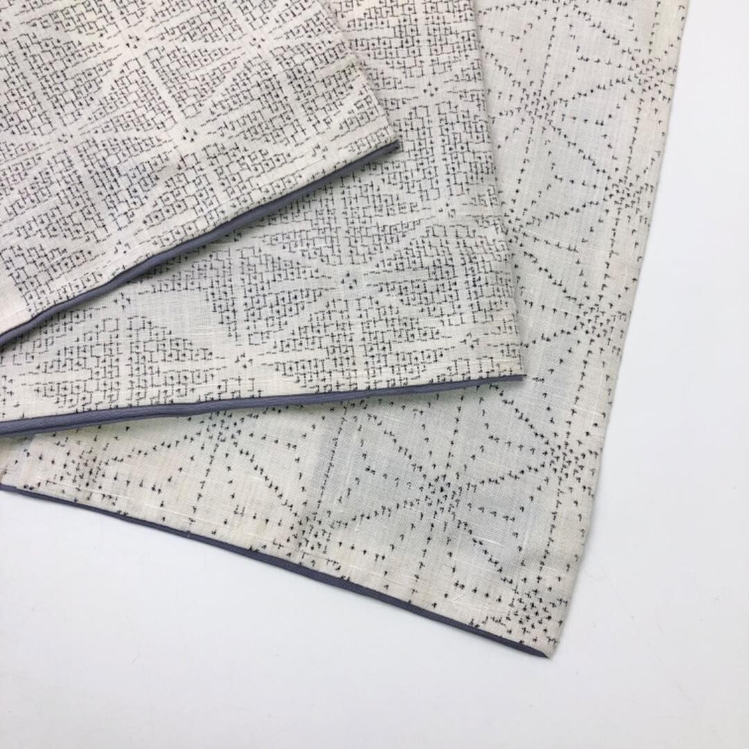 乳白色の上品なお色味に100亀甲、麻の葉模様がデザインされた雰囲気の良い素敵なお品でございます。