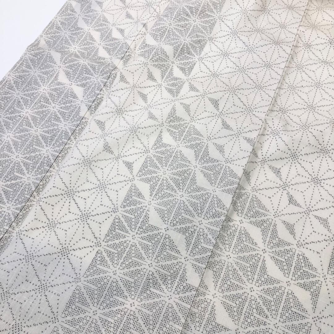 結城紬 100亀甲 麻の葉模様 やまとお誂え 乳白色 しつけ糸 K-5865 着物 きもの kimono 和服 和装 中古 リサイクル着物 【送料無料】