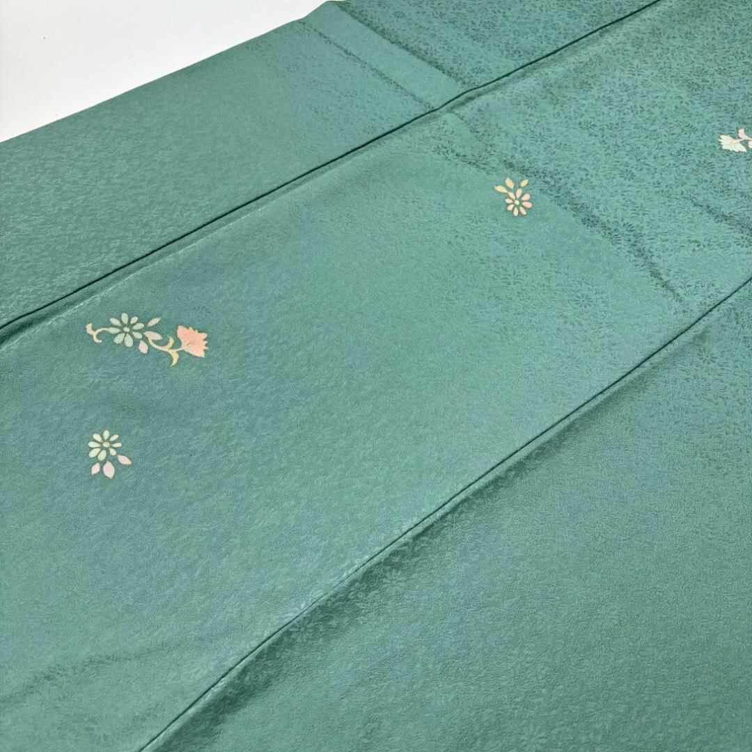 小紋 飛び柄 花模様 豆青色 金彩 K-5889 着物 きもの kimono 和服 和装 中古 リサイクル着物 【送料無料】