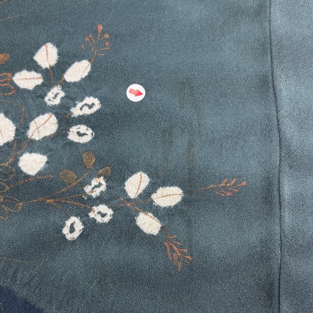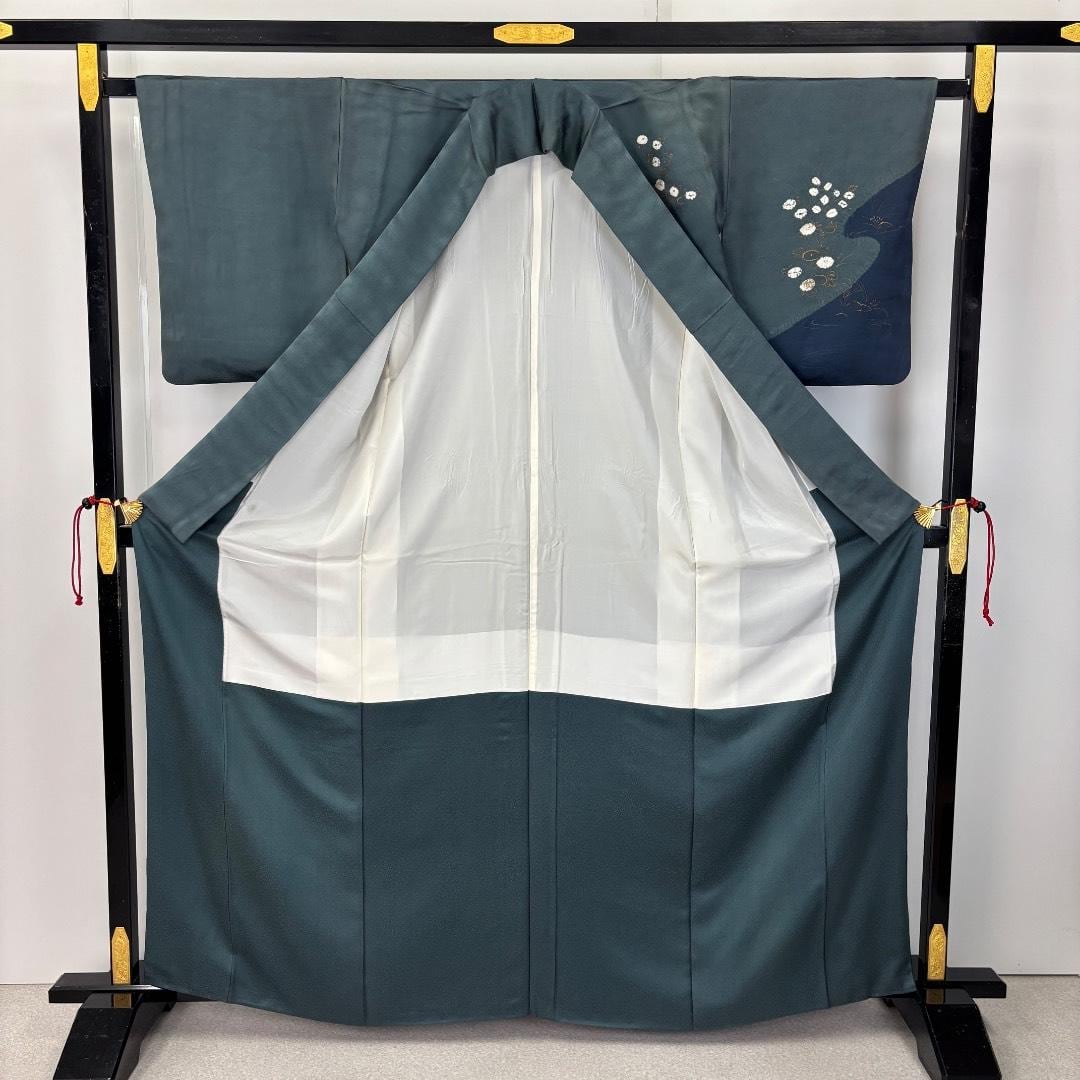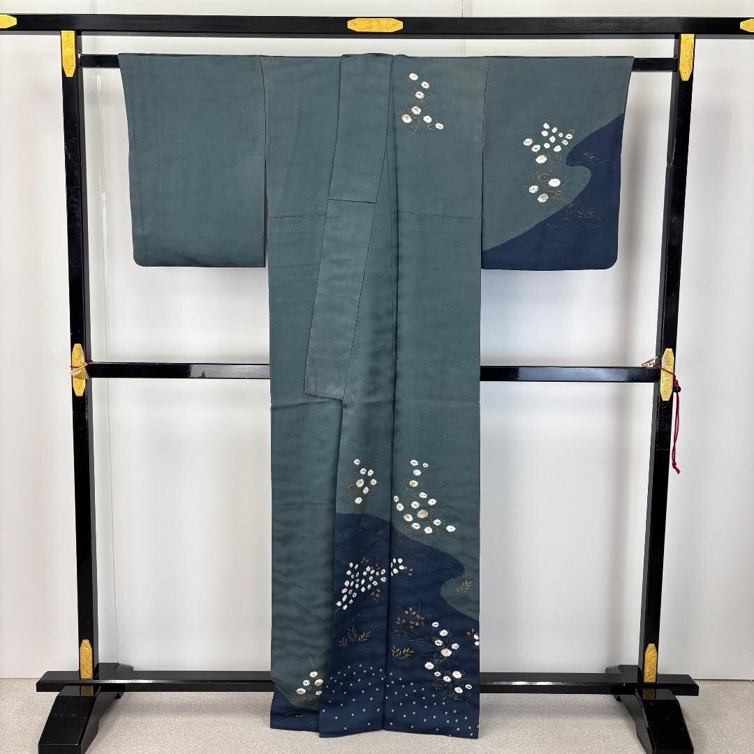 訪問着 絞り柄 染分け 流水に花模様 錆納戸色 K-5888 着物 きもの kimono 和服 和装 中古 リサイクル着物 【送料無料】