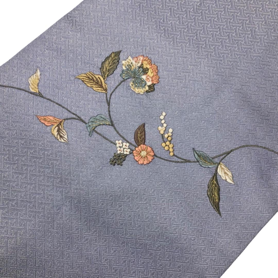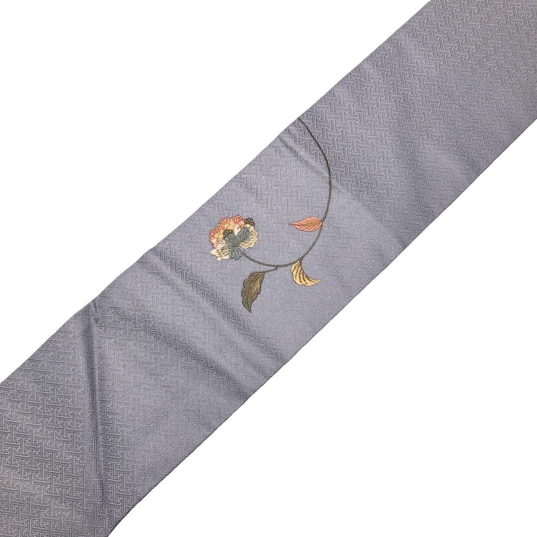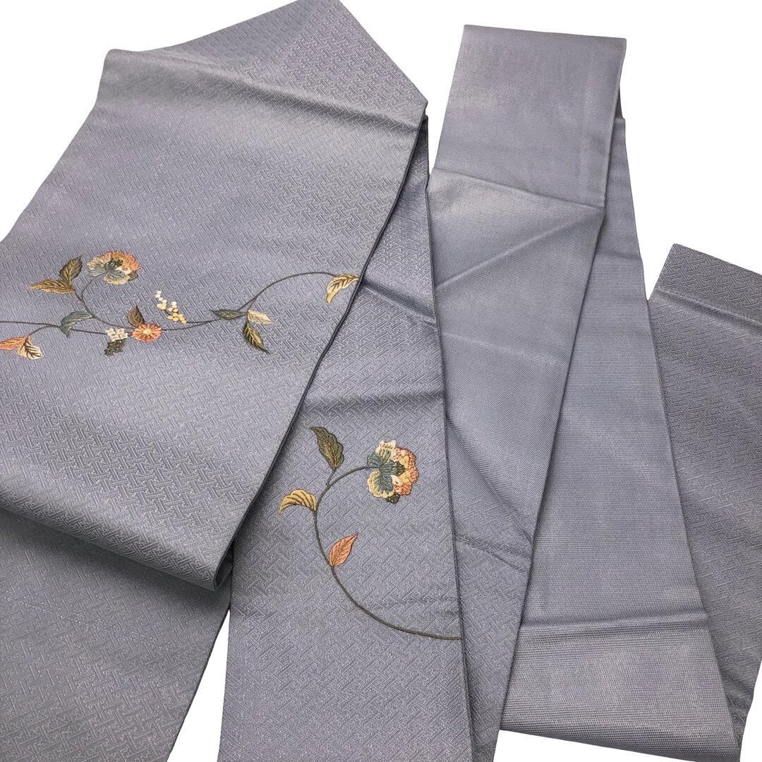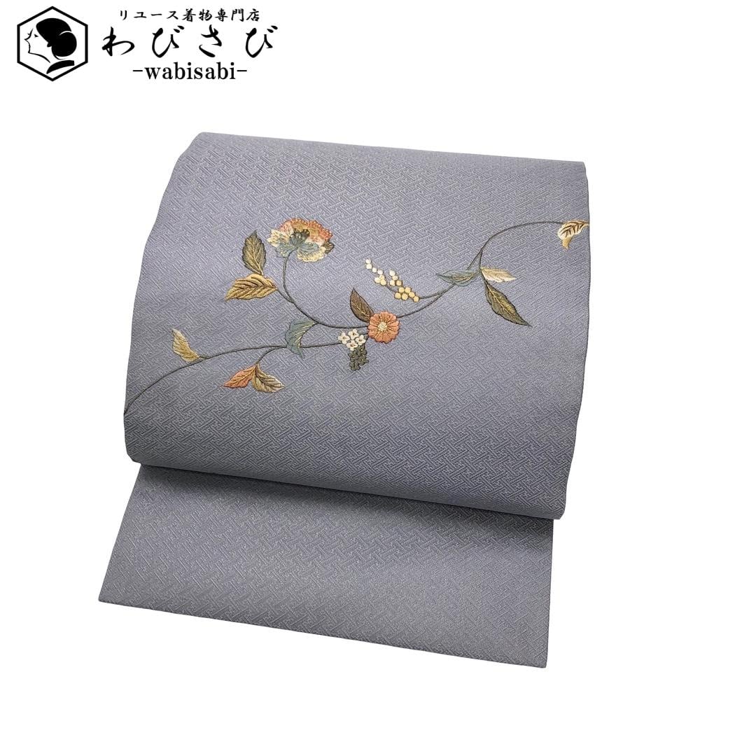 名古屋帯 刺繍 花模様 金糸 鳩羽鼠色 O-6186 着物 きもの kimono 和服 和装 中古 リサイクル着物 【送料無料】