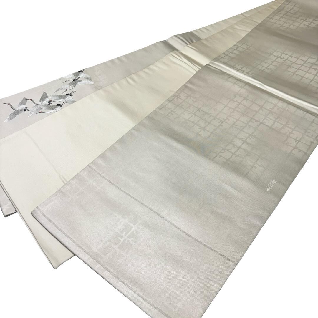 袋帯 雪英導 蘇州刺繍 飛翔鶴 灰白色 O-6193 着物 きもの kimono 和服 和装 中古 リサイクル着物 【送料無料】