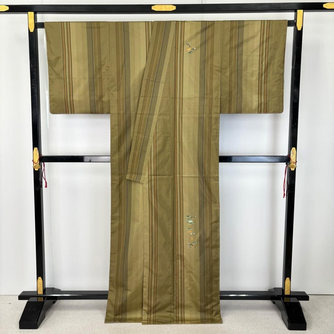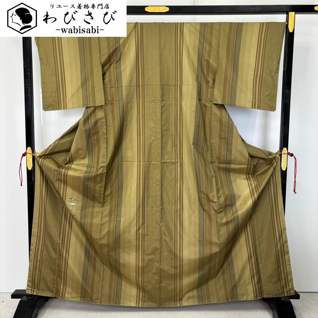 本場大島紬 縞大島 付下げ 丸恵 縦縞模様 市紅茶色 トールサイズ K-5908 着物 きもの kimono 和服 和装 中古 リサイクル着物 【送料無料】