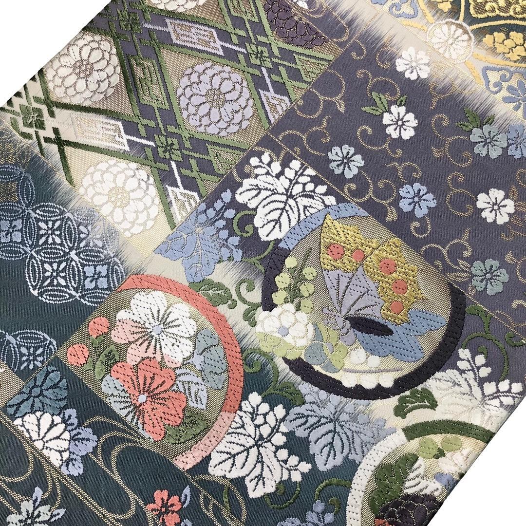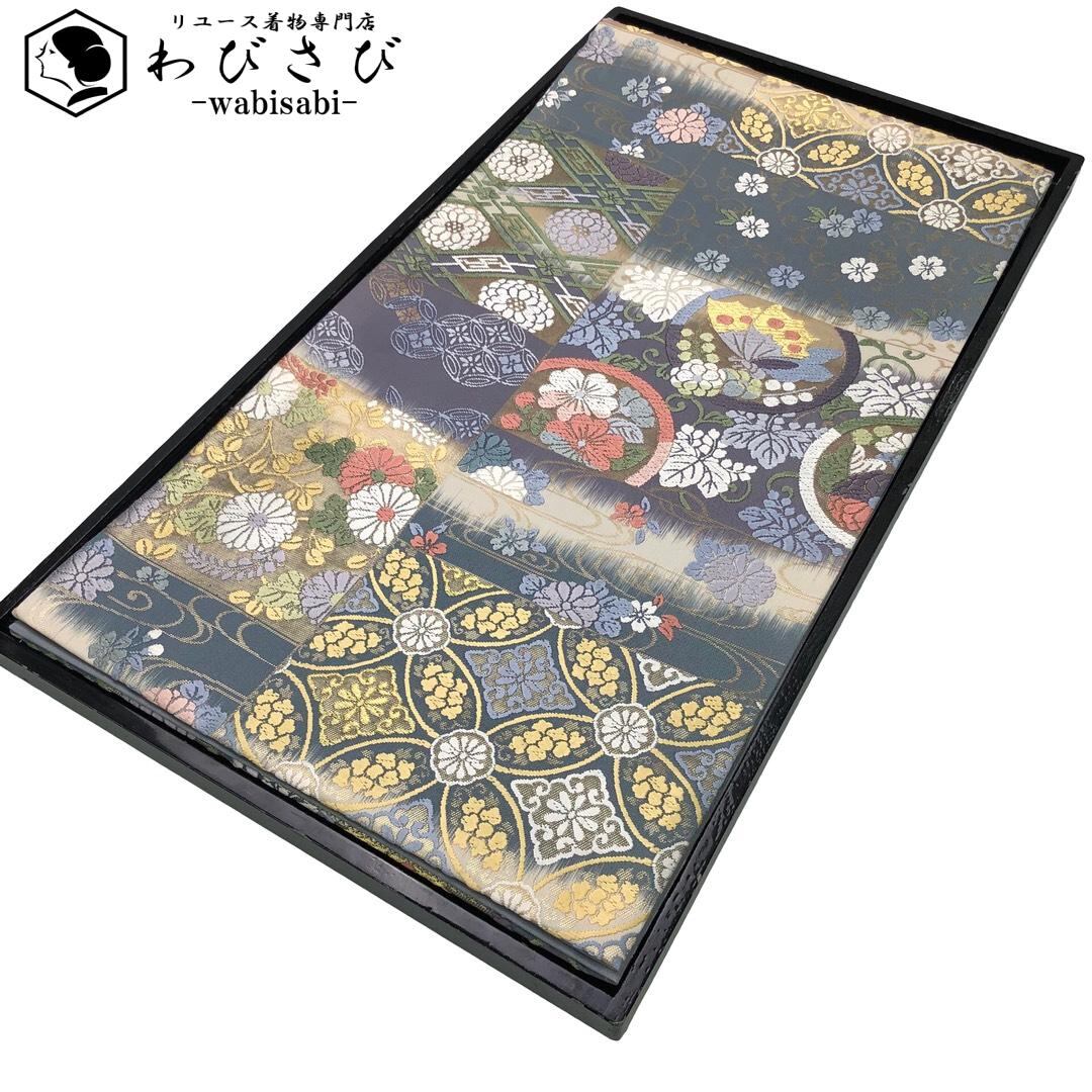 袋帯 唐織 花七宝 丸に蝶々 観世水に花唐草模様 金糸 O-6133 着物 きもの kimono 和服 和装 中古 リサイクル着物 【送料無料】