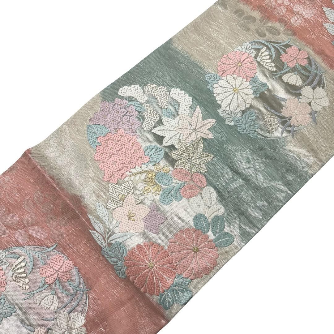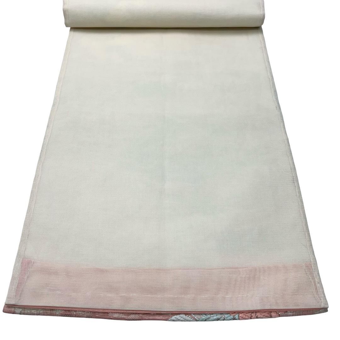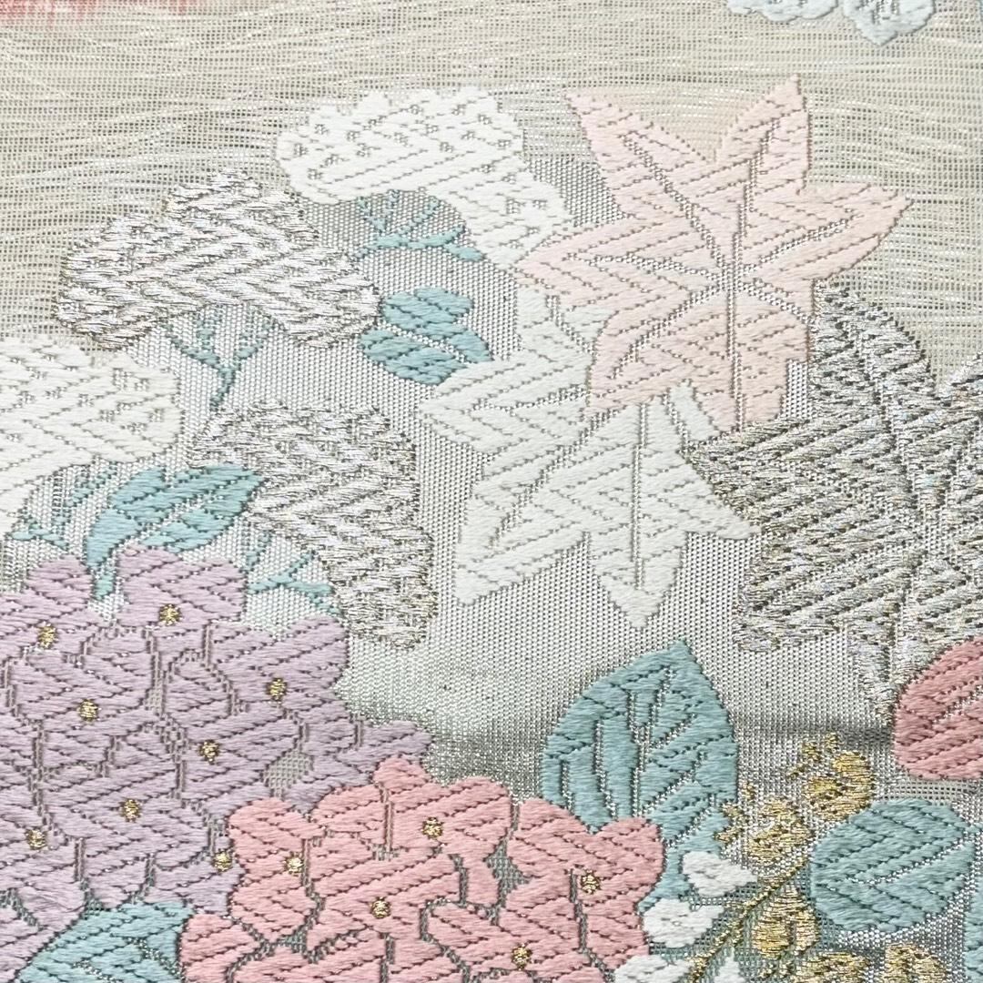 夏帯 袋帯 紗 紫陽花 桔梗 菊 花模様 金銀糸 乳白色 O-6175 着物 きもの kimono 和服 和装 中古 リサイクル着物 【送料無料】