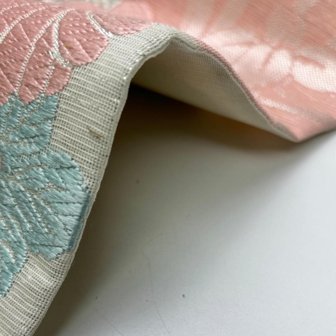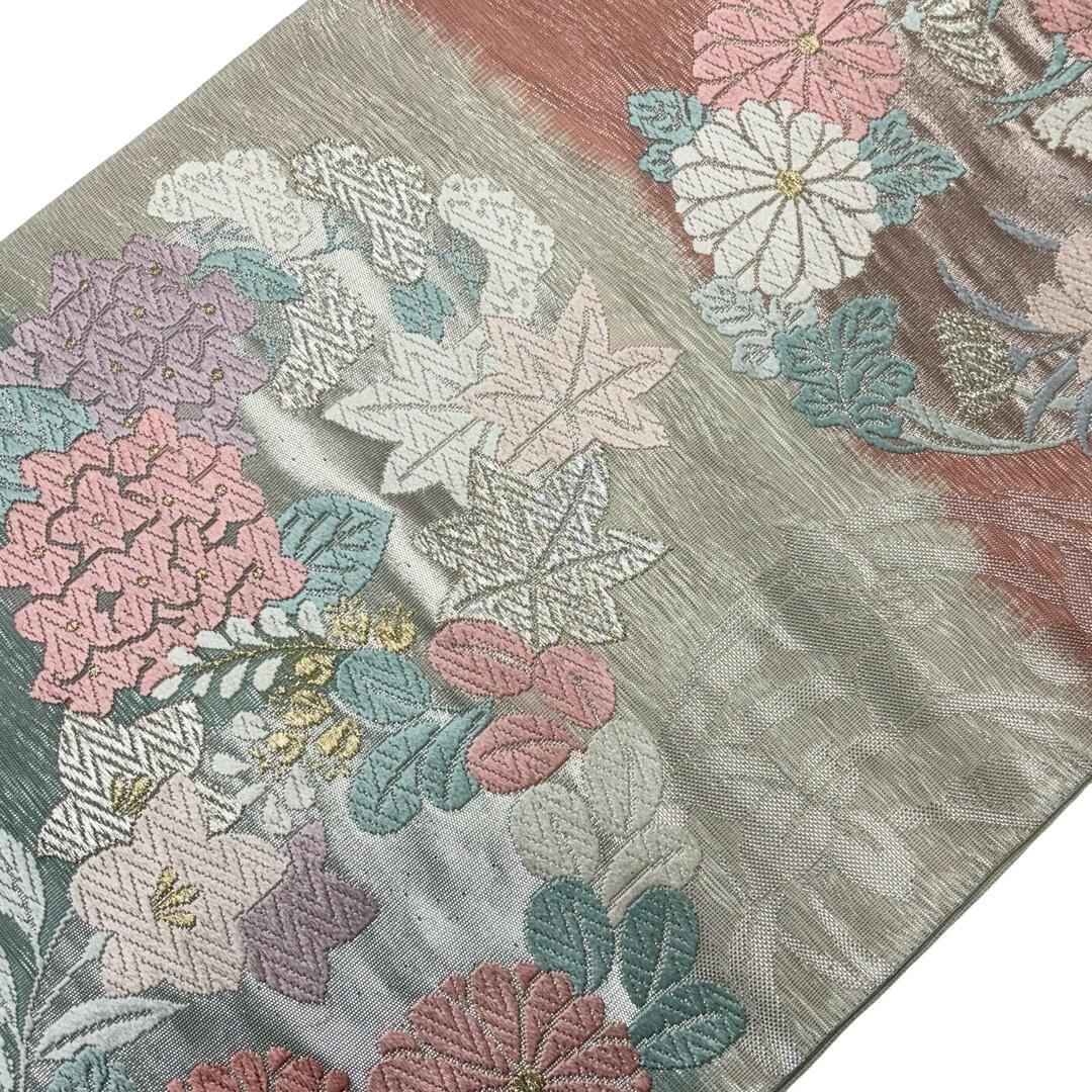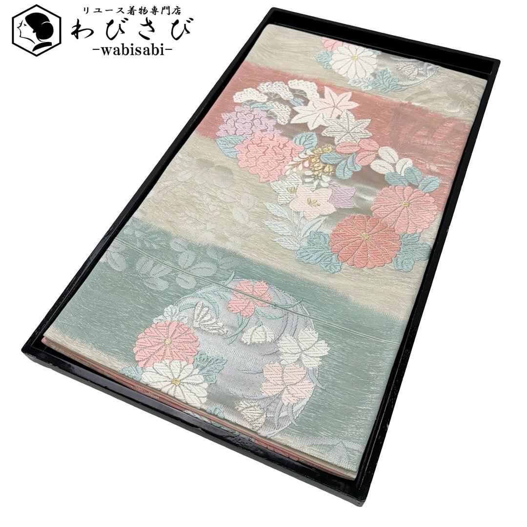 夏帯 袋帯 紗 紫陽花 桔梗 菊 花模様 金銀糸 乳白色 O-6175 着物 きもの kimono 和服 和装 中古 リサイクル着物 【送料無料】