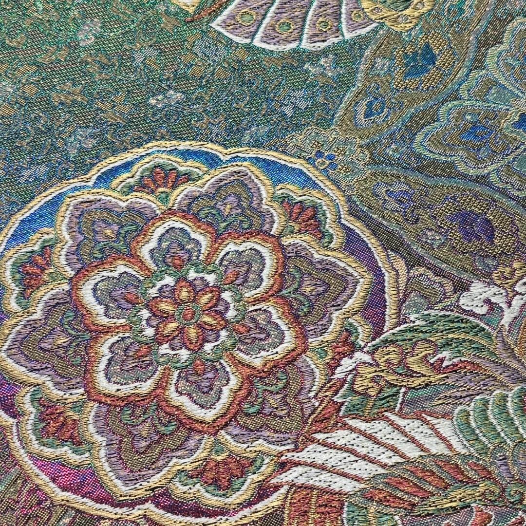 袋帯 陽文綴 華柄模様 蝶々 鳳凰 金糸 O-6210 着物 きもの kimono 和服 和装 中古 リサイクル着物 【送料無料】