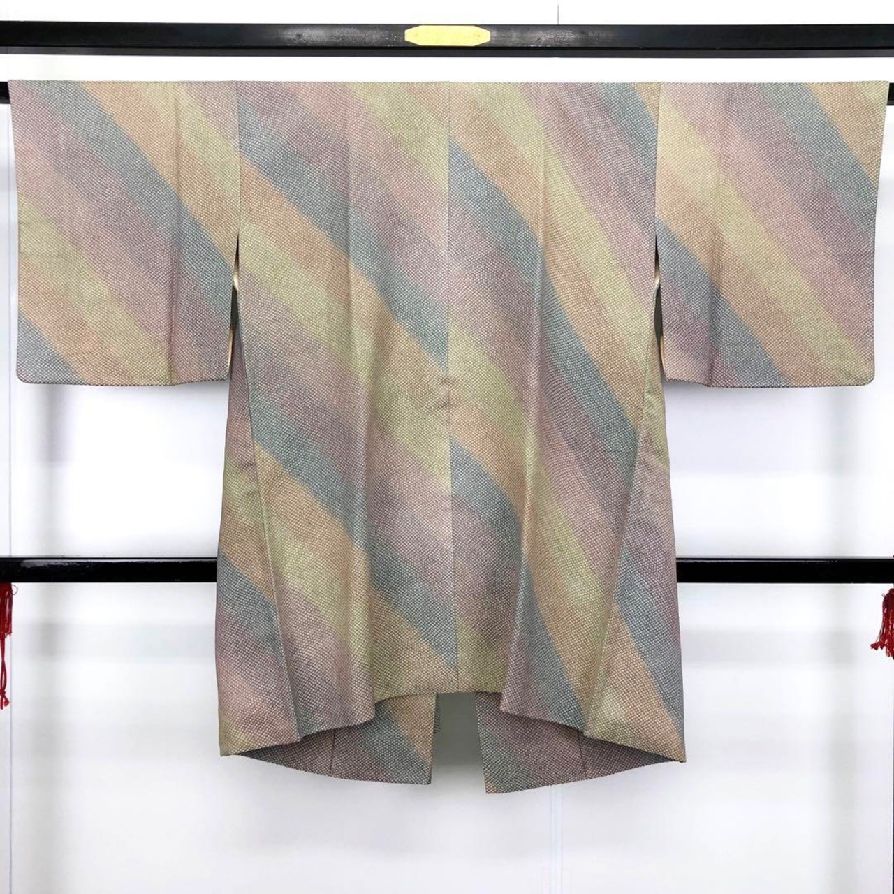 斜めの色彩美しいグラデーションのお色味に鹿の子模様がデザインされた素敵なお品でございます。