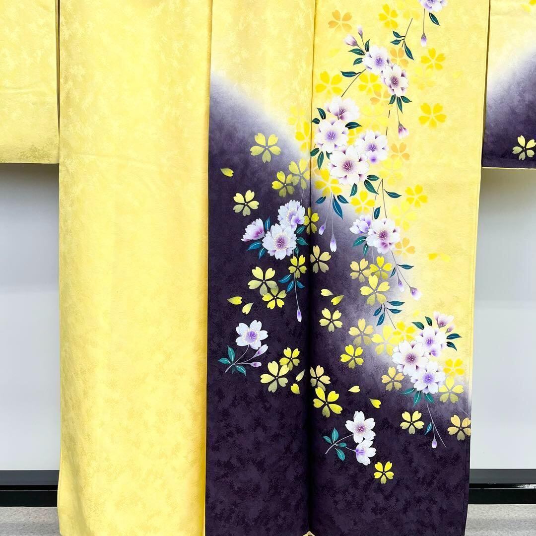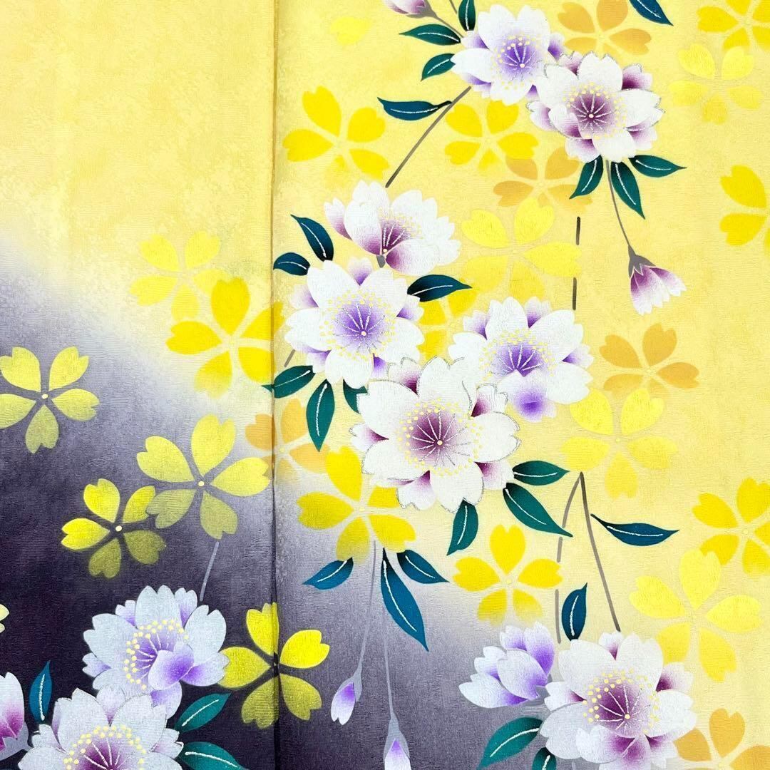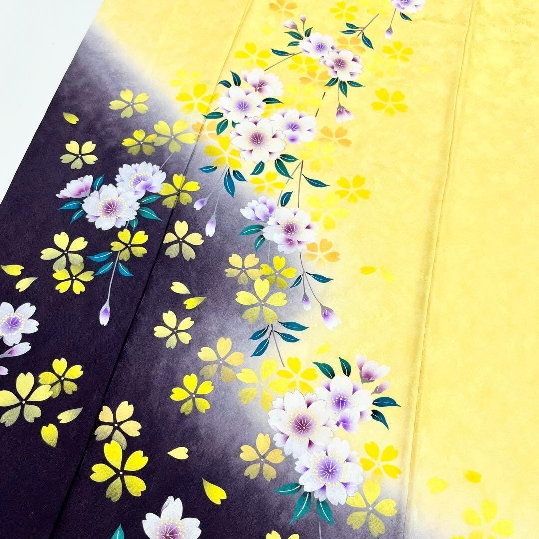 パステル調の黄色にグラデーション、美しい桜の花柄がデザインされた素敵なお品でございます。