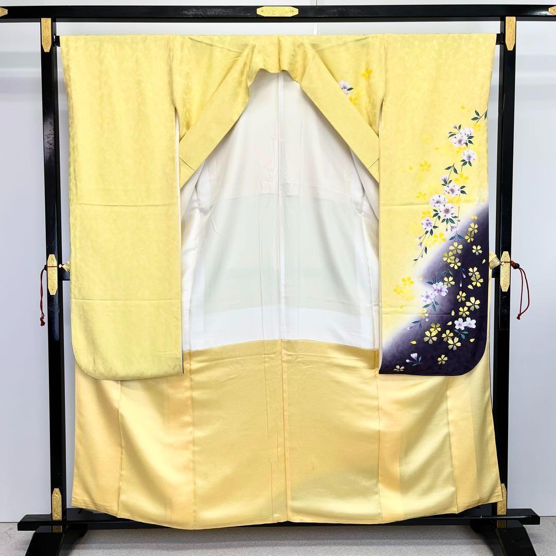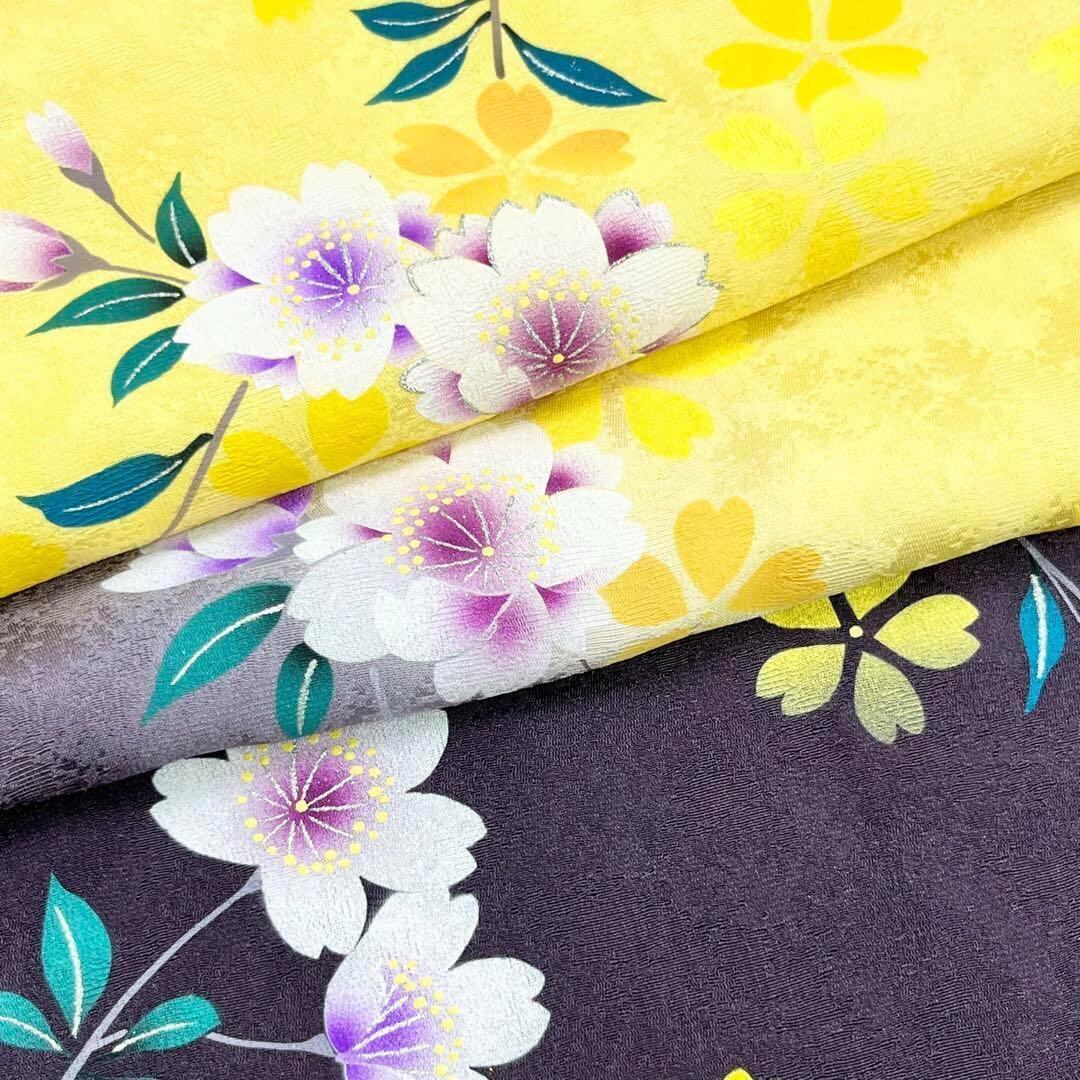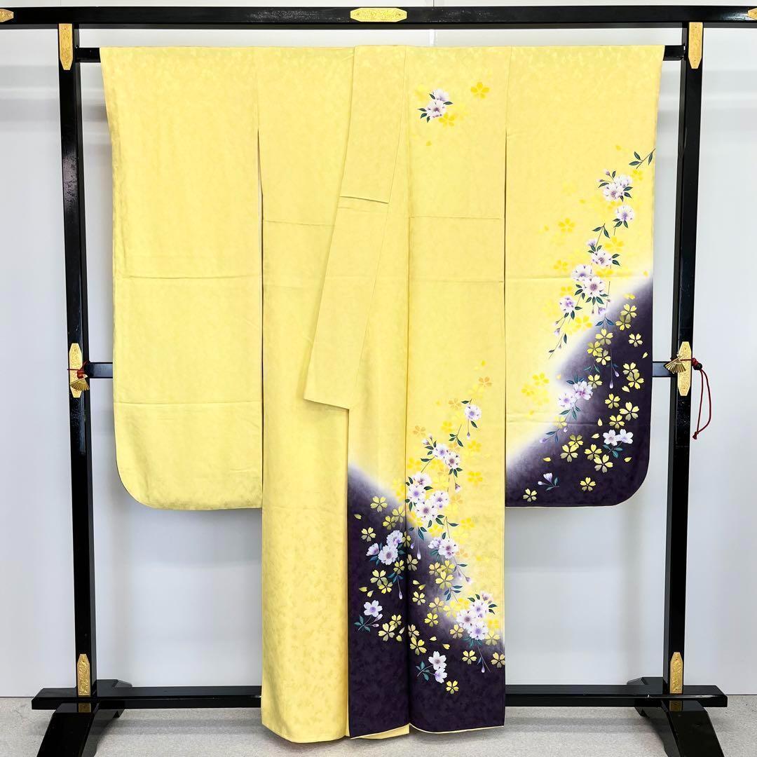 パステル調の黄色にグラデーション、美しい桜の花柄がデザインされた素敵なお品でございます。