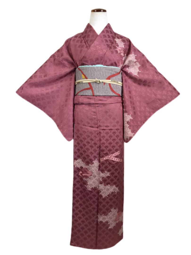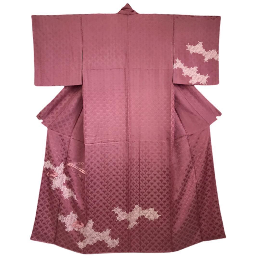 付下げ 青海波紋 絞りと扇子と笛の刺繍 K-1386
