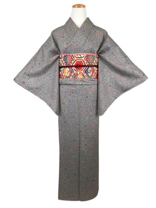小紋 小花の花唐草模様 薄灰色 K-1425
