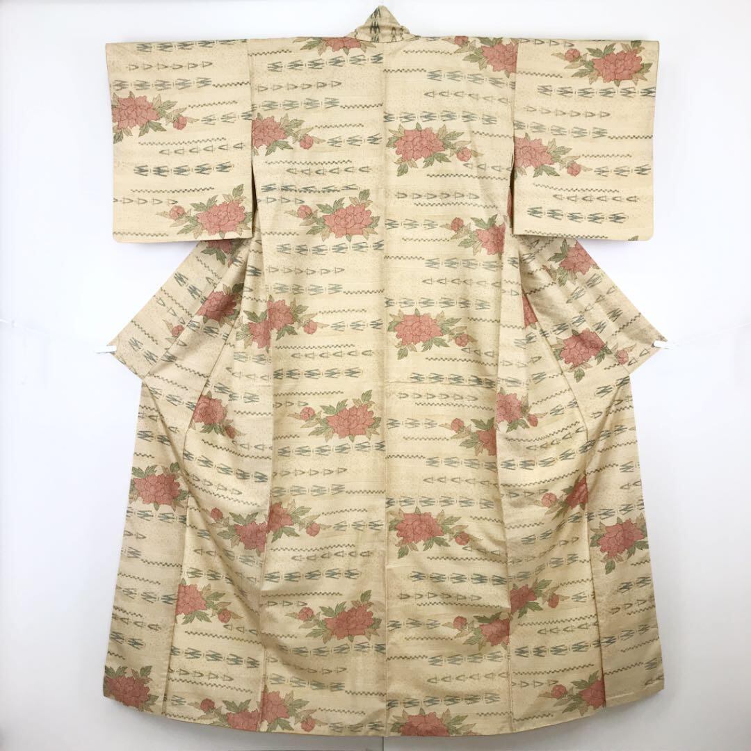 小紋 赤い牡丹の花 寄せ柄模様 K-1455