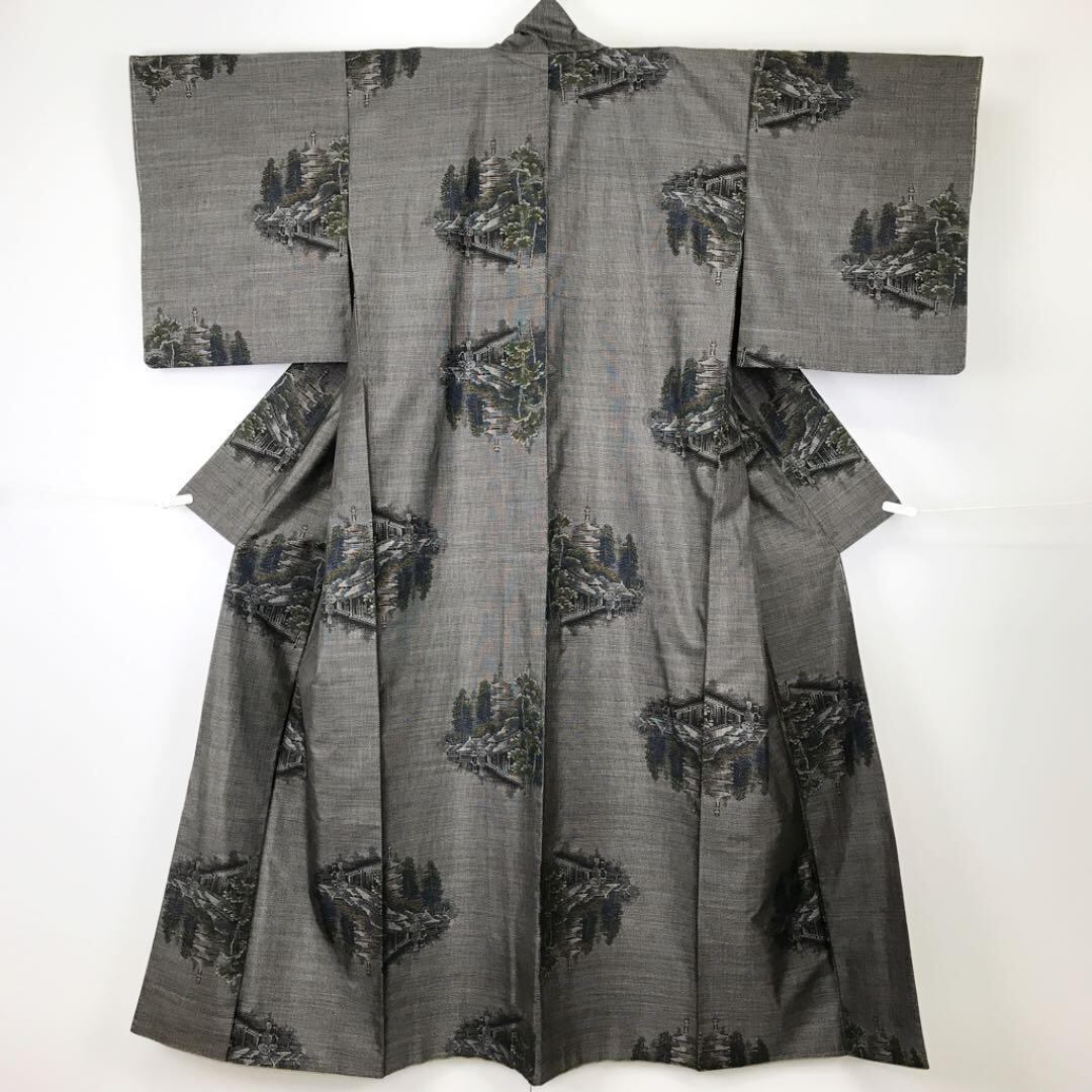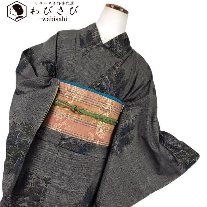 本場大島紬 カタス9マルキ 茶泥染 風景柄 三重塔 しつけ糸 K-1470