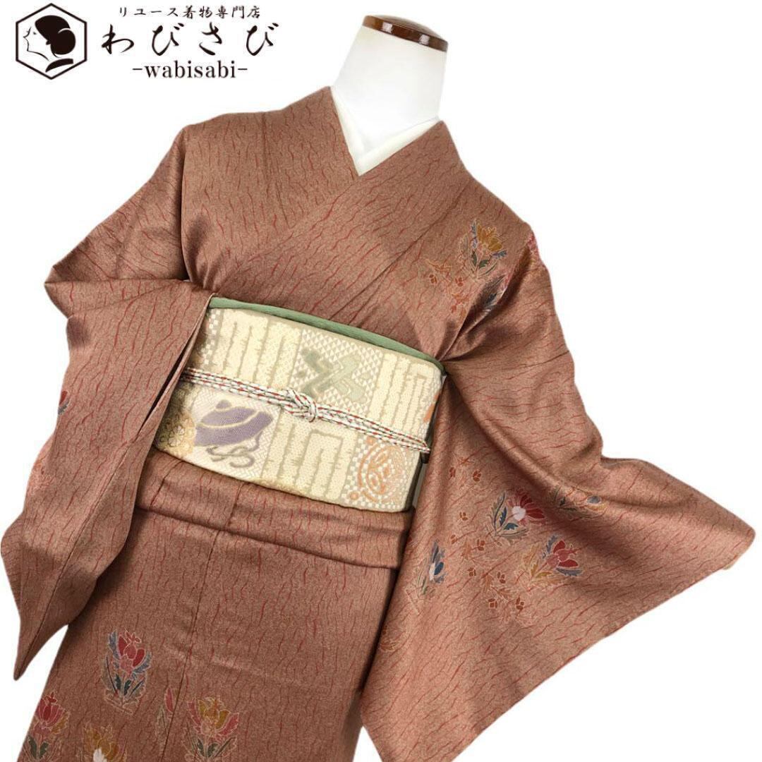 付下げ 京友禅作家 松井青々 縦柄木目に花柄模様 K-1486
