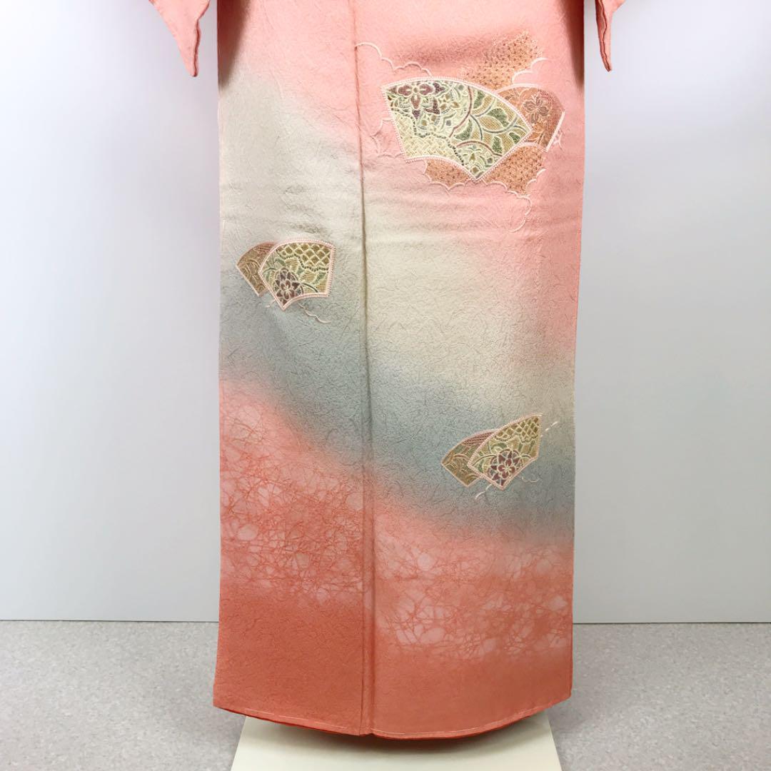 付下げ 汕頭刺繍 地紙に花柄模様 桃色 トールサイズ しつけ糸 K-1504