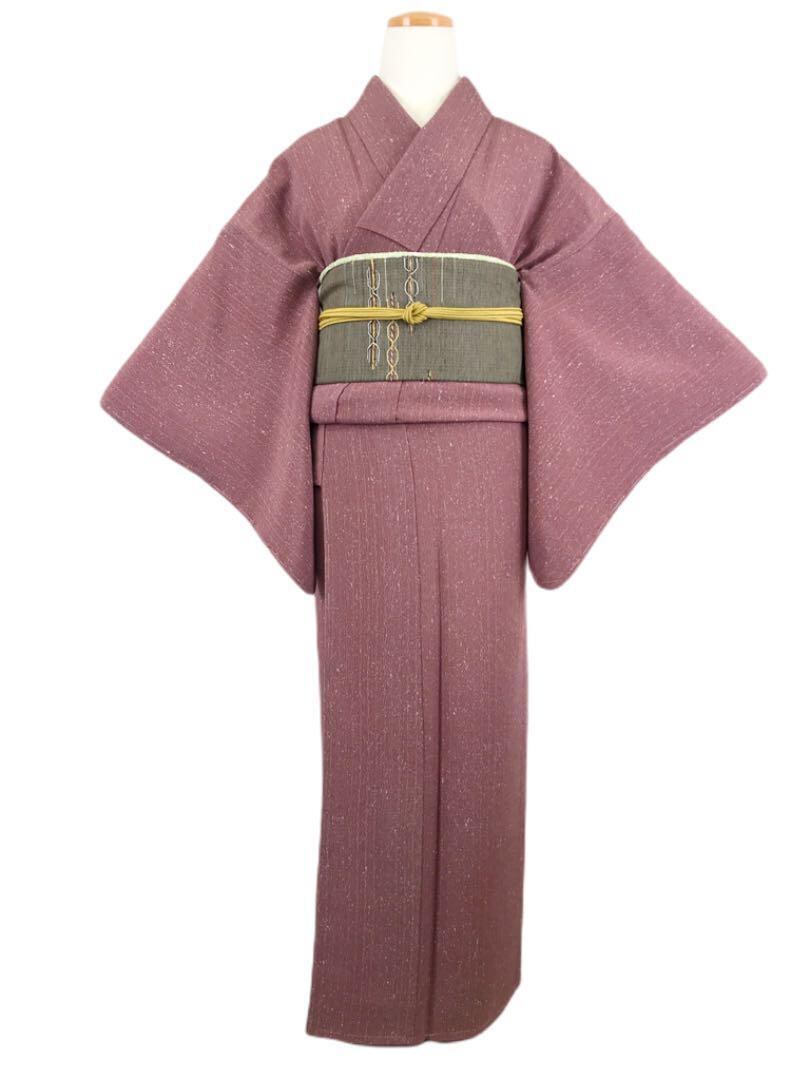 色無地 縮緬 縦縞 叩き染 しつけ糸 薄蘇芳色 K-1614