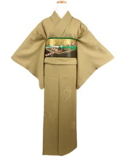 色無地 花柄刺繍 芥子色 しつけ糸 K-1618
