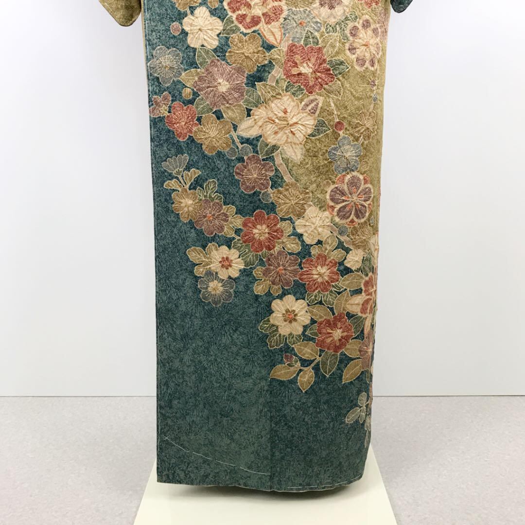 訪問着 椿と梅の花模様 雰囲気の良い絞り加工 しつけ糸 K-1624