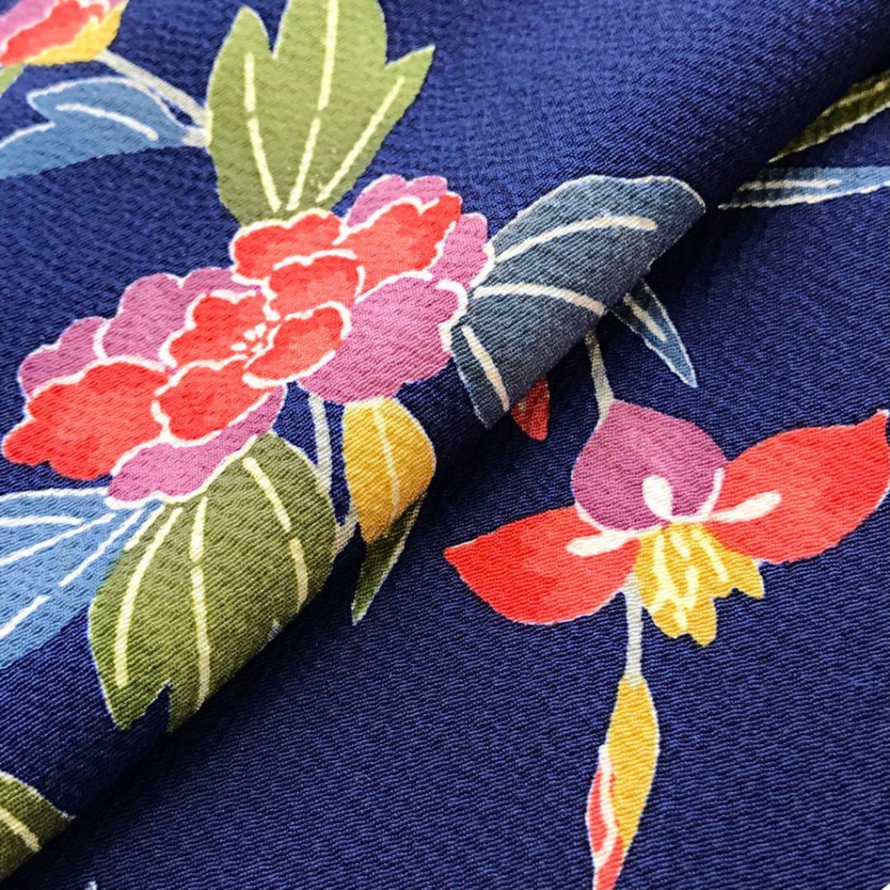 小紋 花柄型染 上質な縮緬 しつけ糸 K-1688