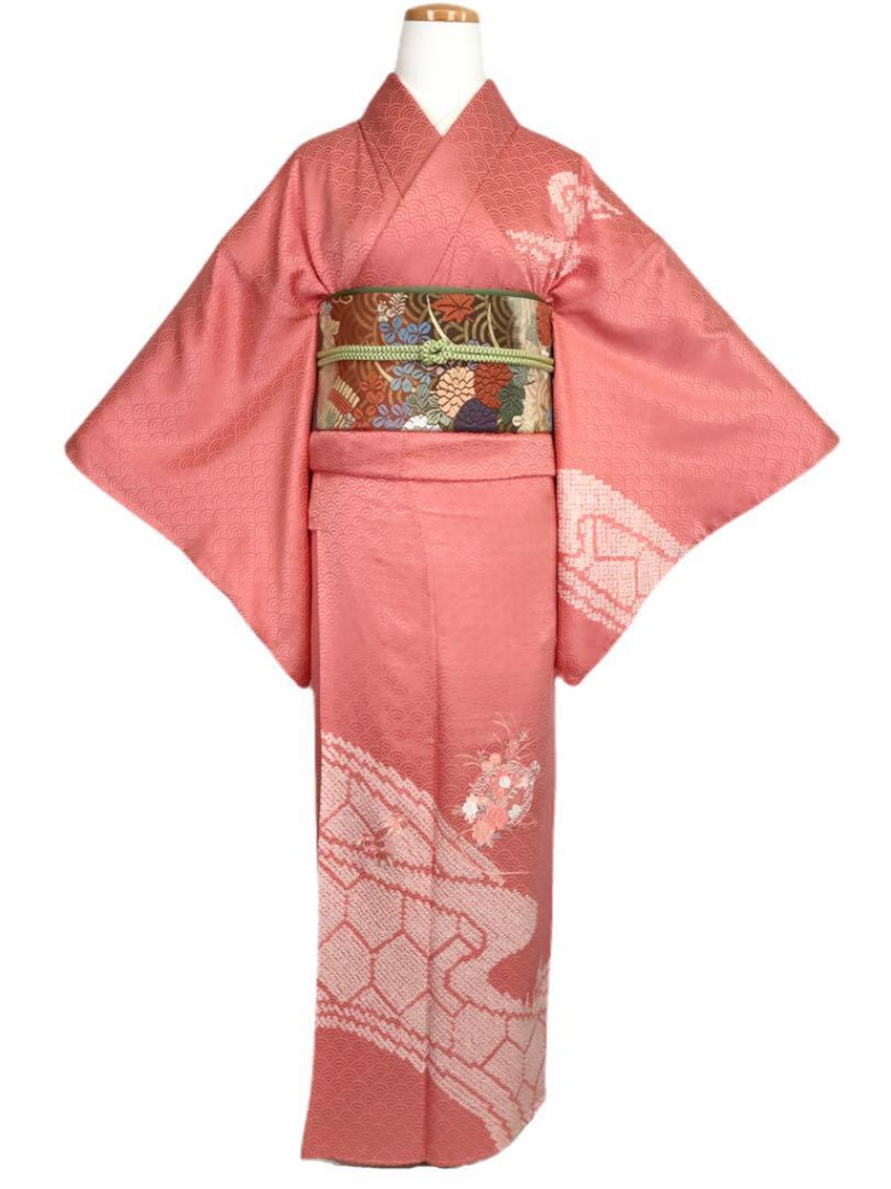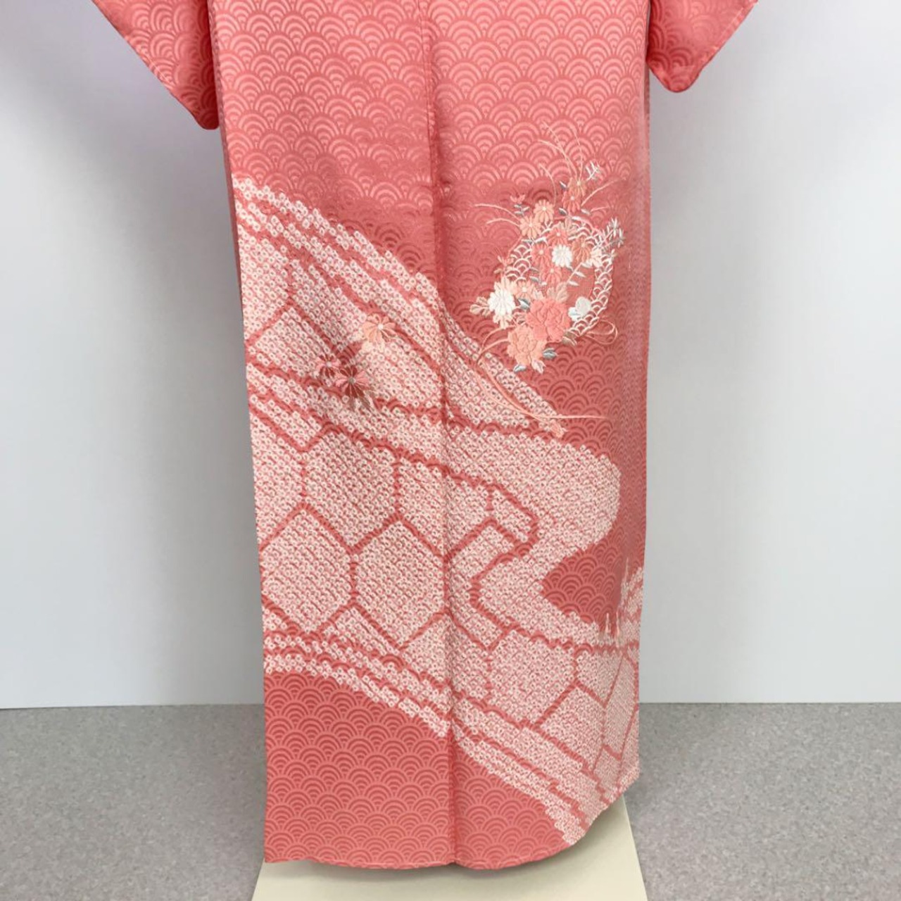 付下げ 花柄刺繍 鹿の子絞り 地模様 しつけ糸 トールサイズ K-1735