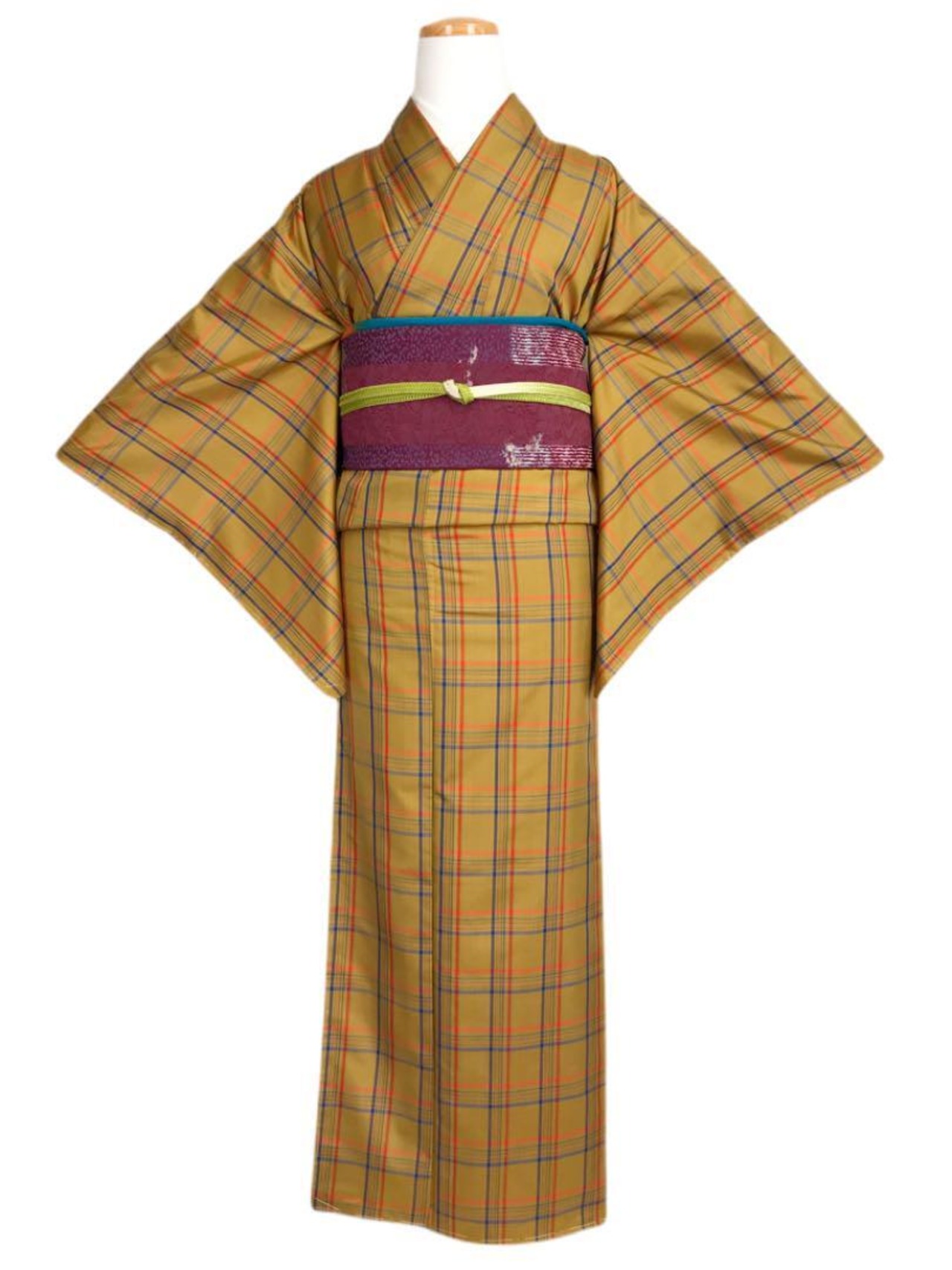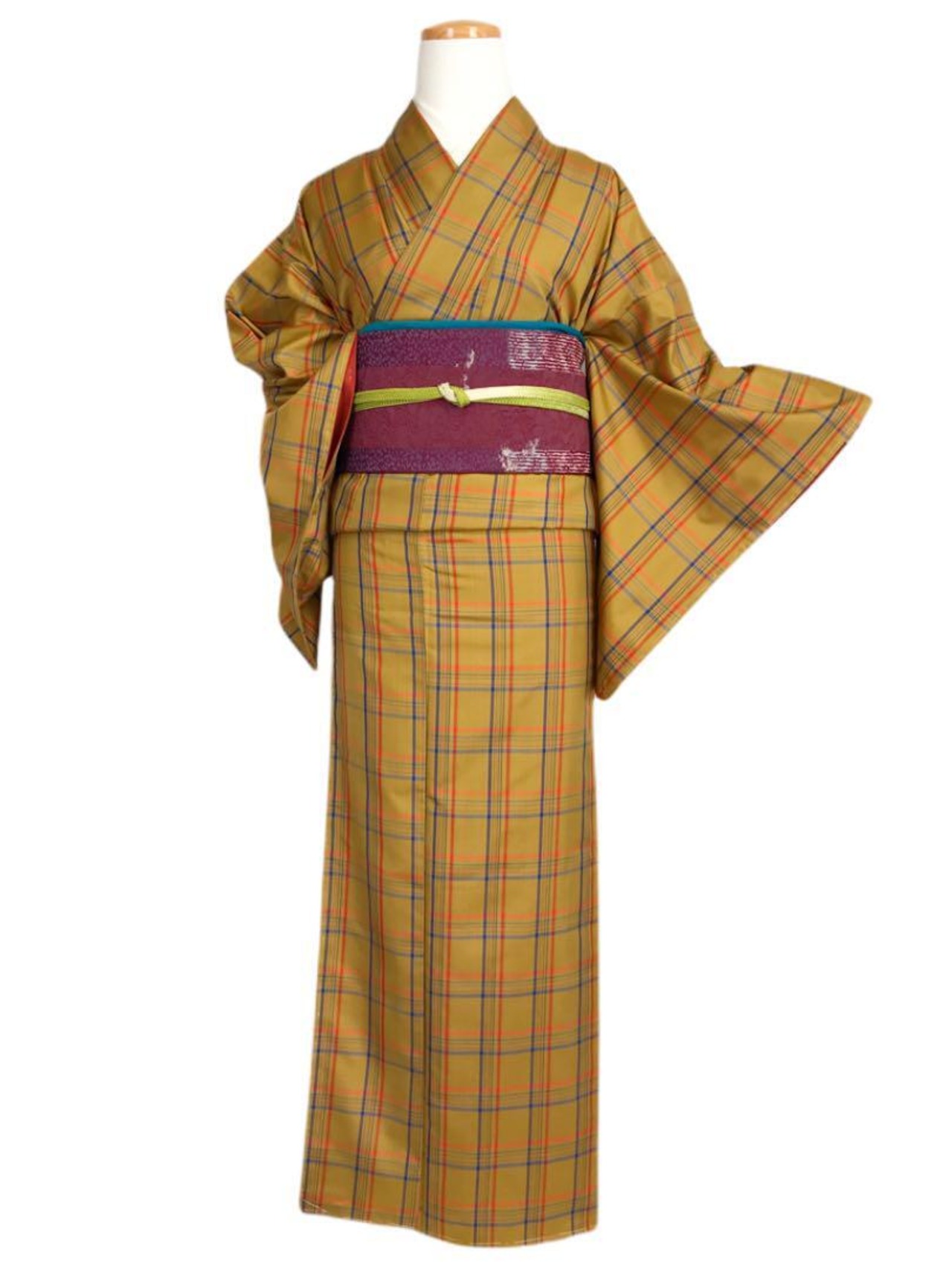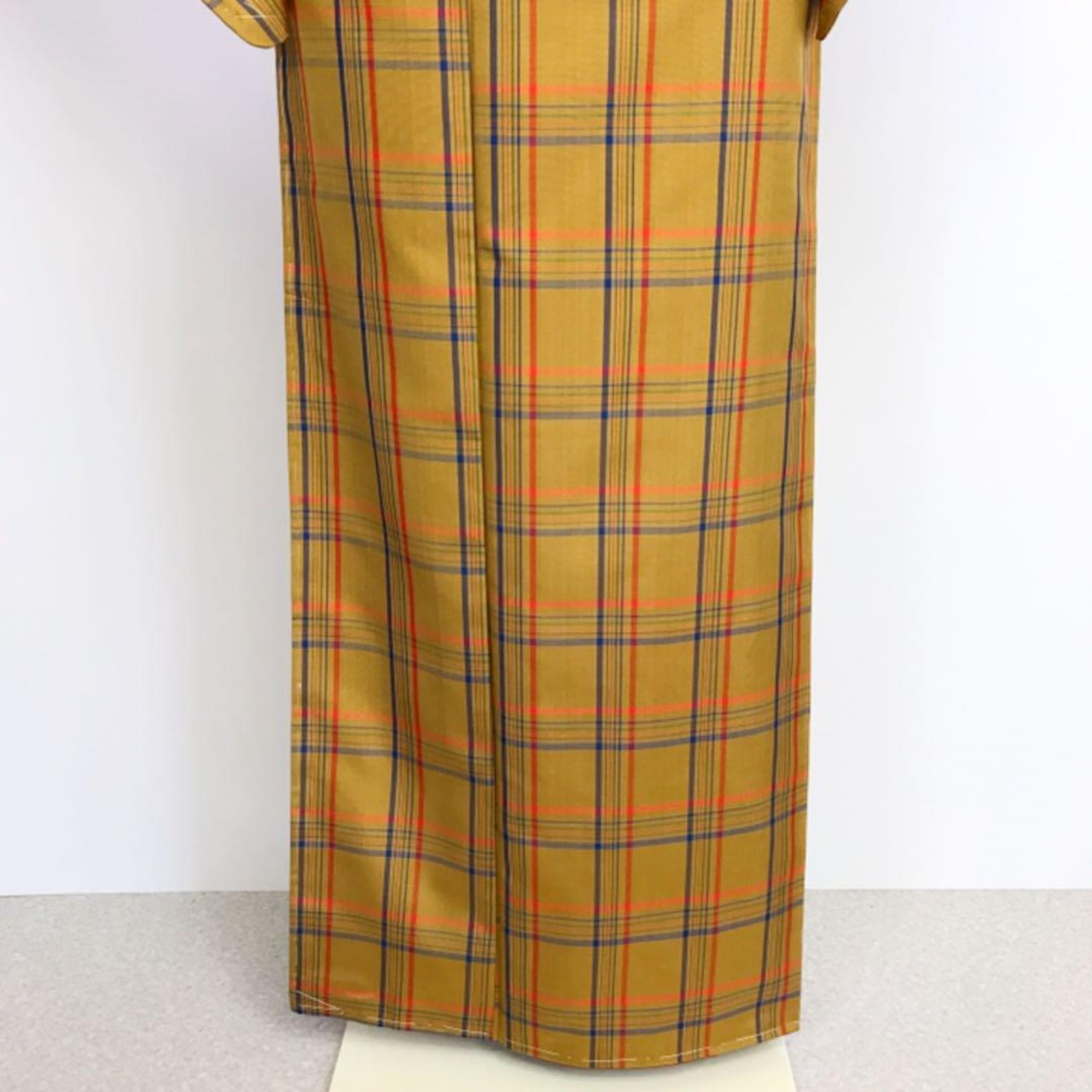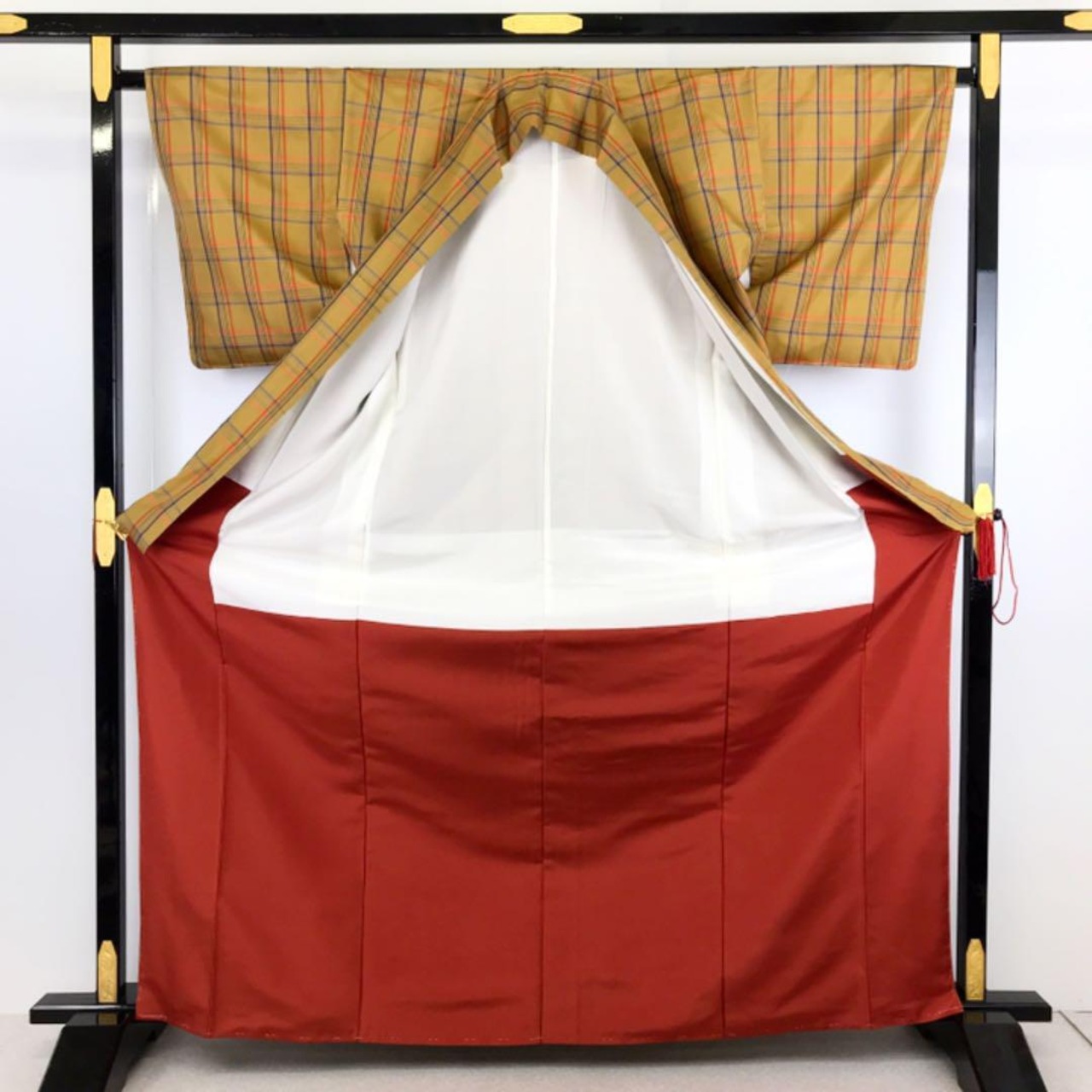 紬着物 上質な手触り 格子柄 しつけ糸 K-1810
