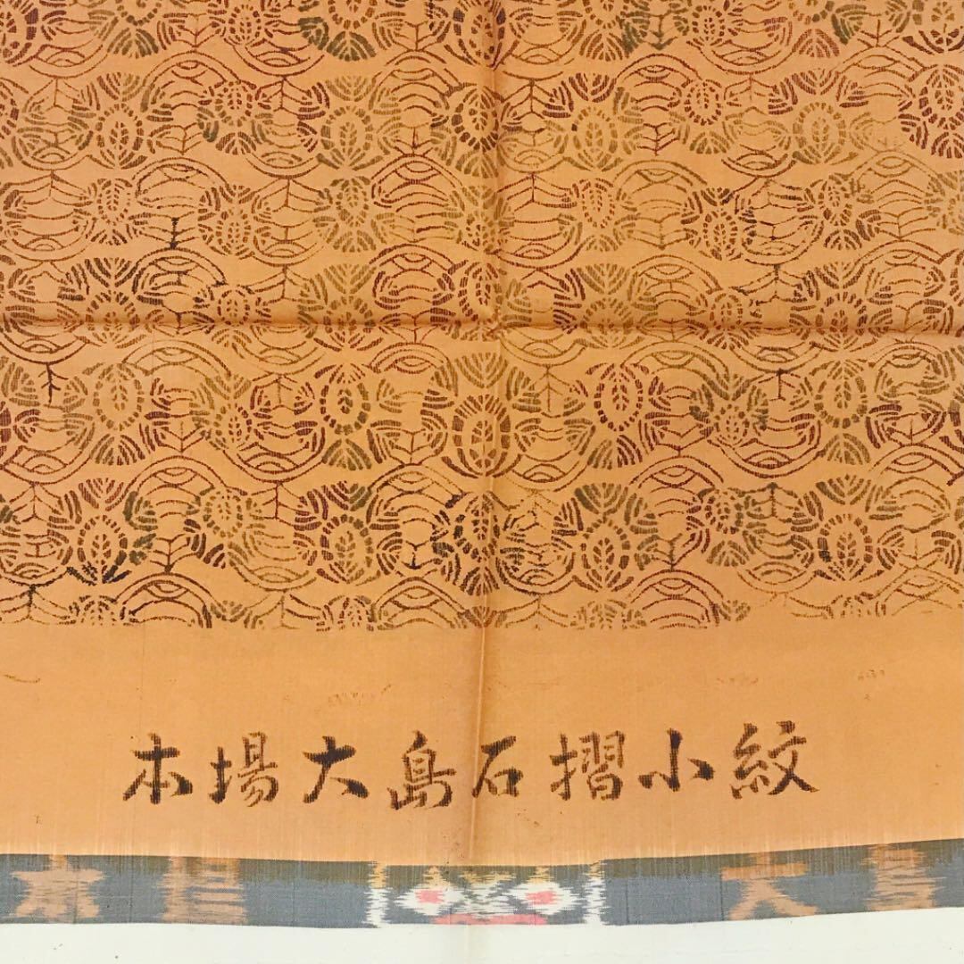 本場大島紬 石摺小紋 型染 証紙付 しつけ糸 K-1903
