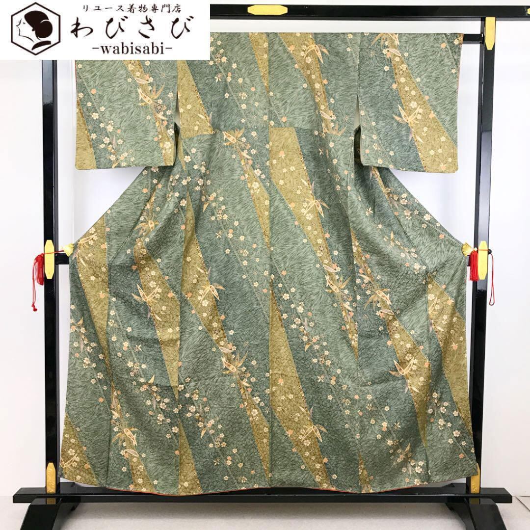 小紋 美しい桜と笹柄 金彩 ガード加工 しつけ糸 K-2003